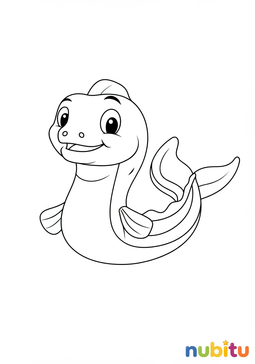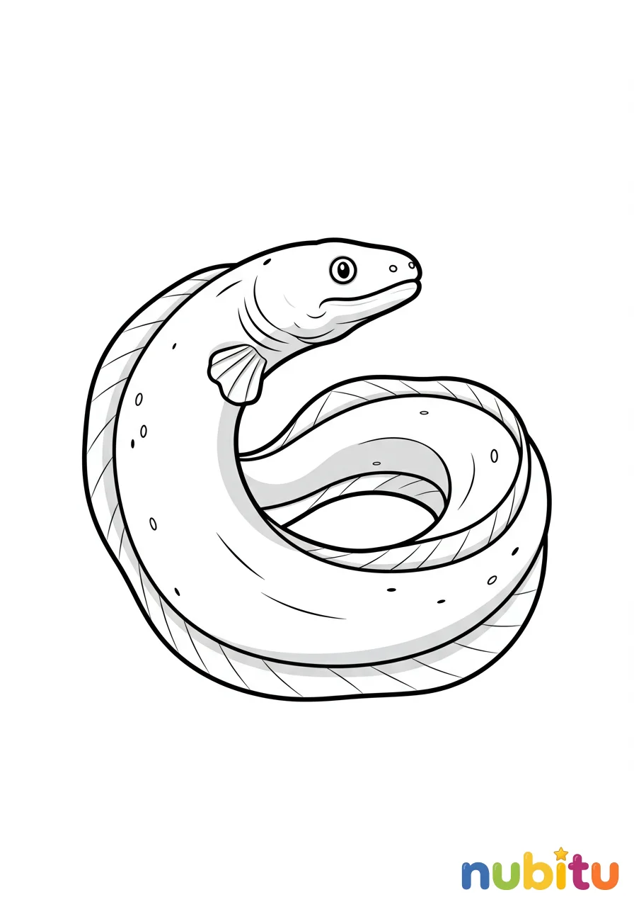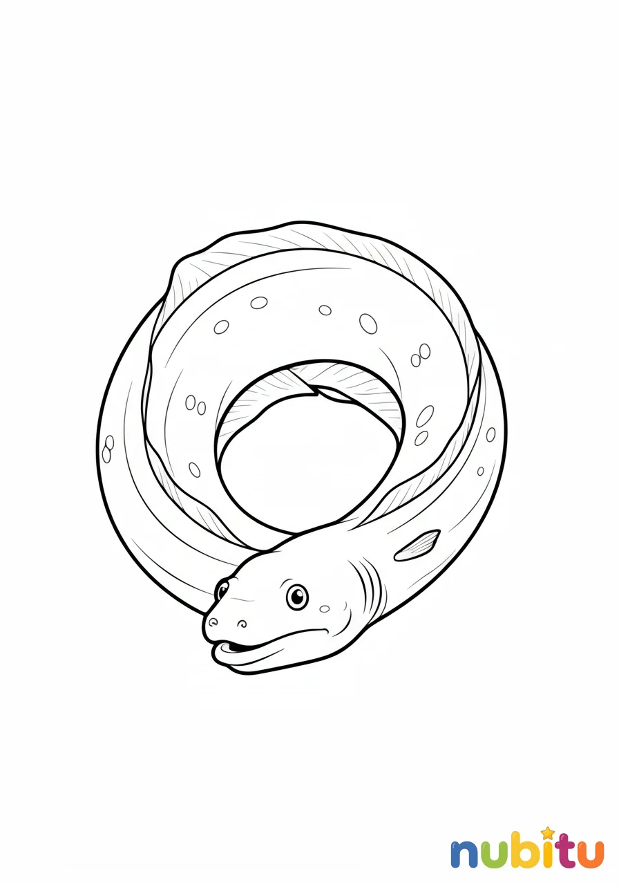 ¡Esta anguila está jugando! Le encanta deslizarse por el agua. ¿De qué color pintarás su sonrisa y sus ojos grandes?