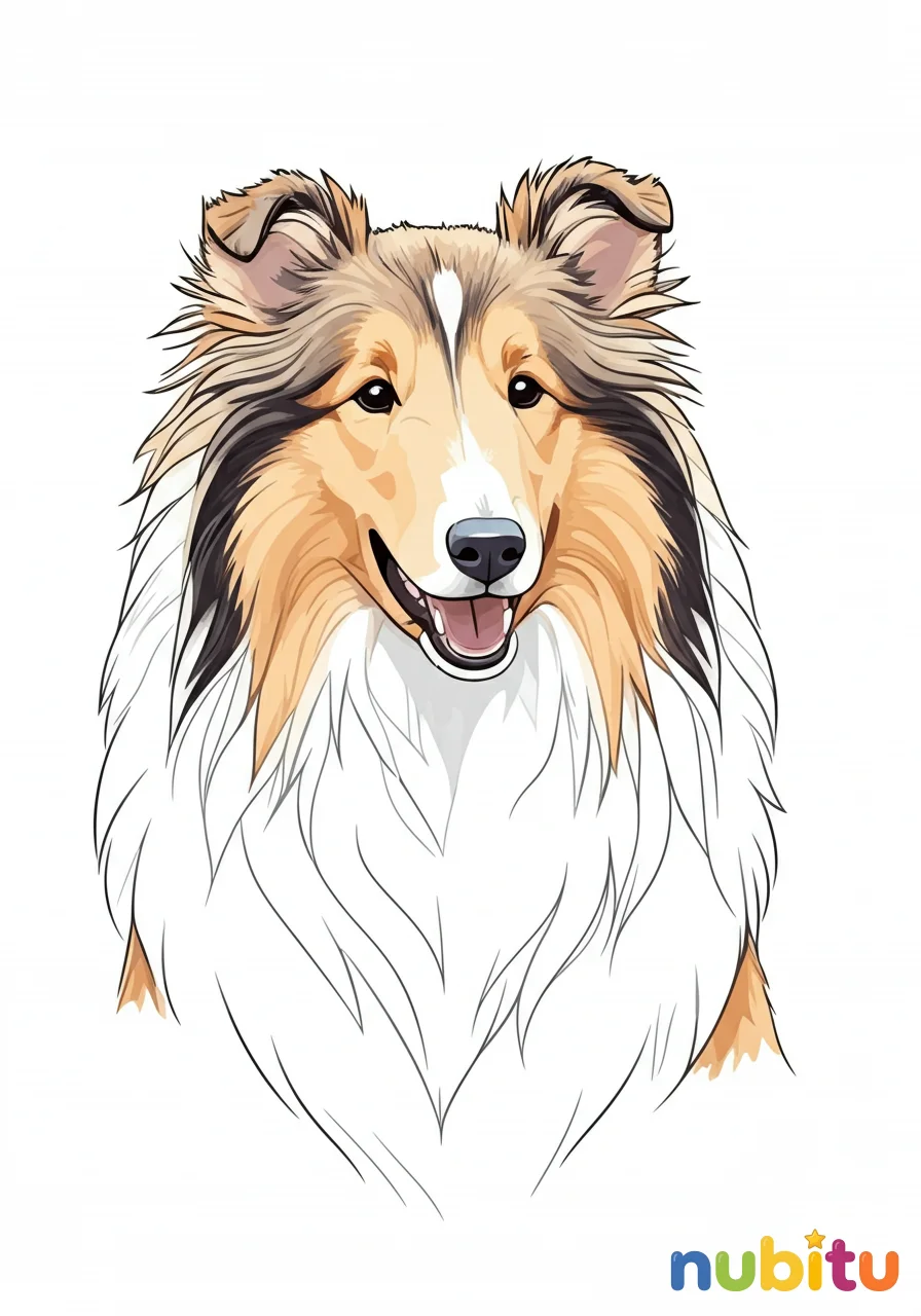 ¡Qué hermoso Collie! Tiene un pelaje largo y elegante, y una mirada muy inteligente. Imagina los colores más bonitos para su pelo y sus ojos. ¡Será una obra de arte!
