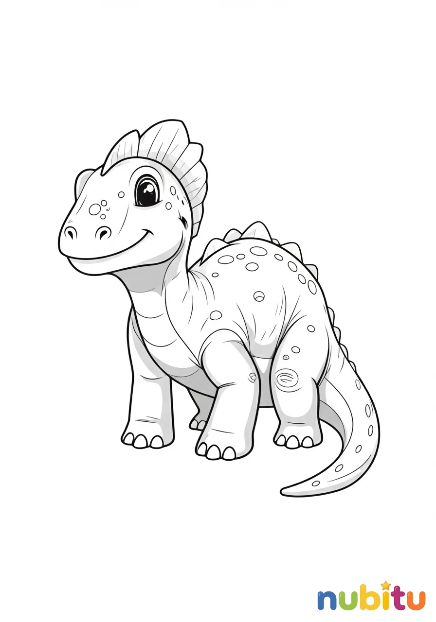 Aquí vemos a un Adamantisaurus joven, quizás un poco más pequeño, pero igual de fuerte, caminando con curiosidad por un claro. Sus ojos grandes y amigables observan el mundo, invitando a los pequeños artistas a colorear su piel texturizada y sus placas protectoras.