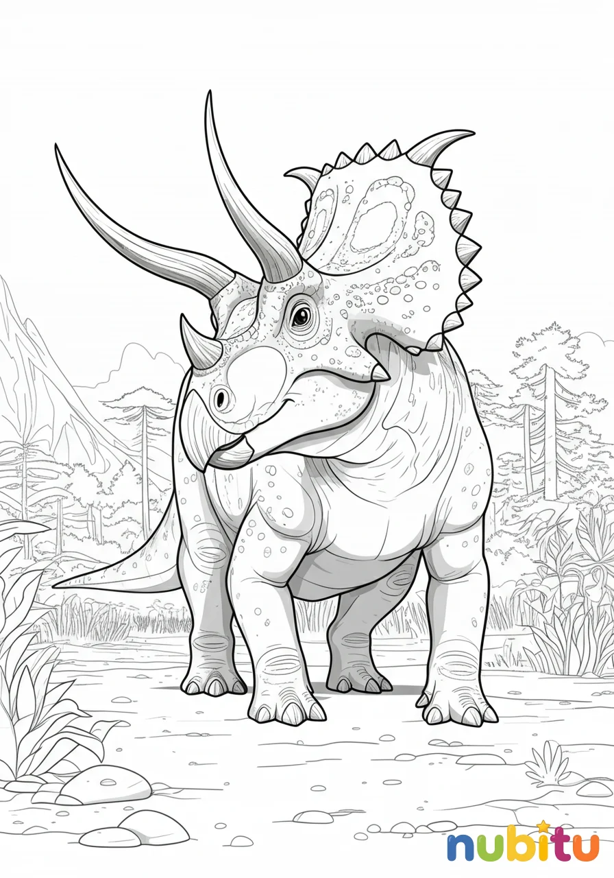Es un dinosaurio fascinante para dibujar por sus características únicas como los cuernos y el escudo, que permiten mucha creatividad en la elección de colores y patrones, además de ser un tema que encanta a los niños.