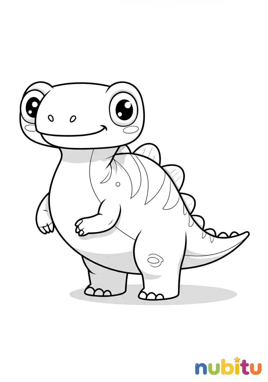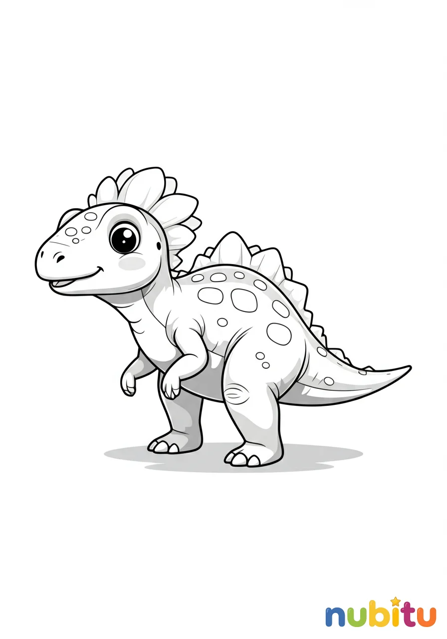 Un adorable Aletopelta bebé, con sus escudos protectores aún pequeños, explorando su entorno con curiosidad. Su expresión es tierna y un poco juguetona, listo para ser llenado de vida con tus colores.