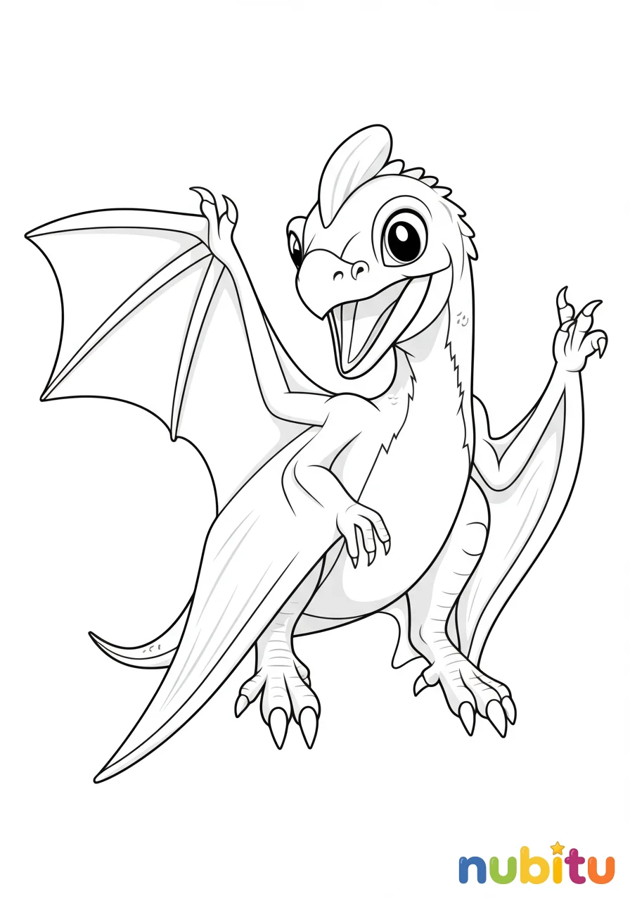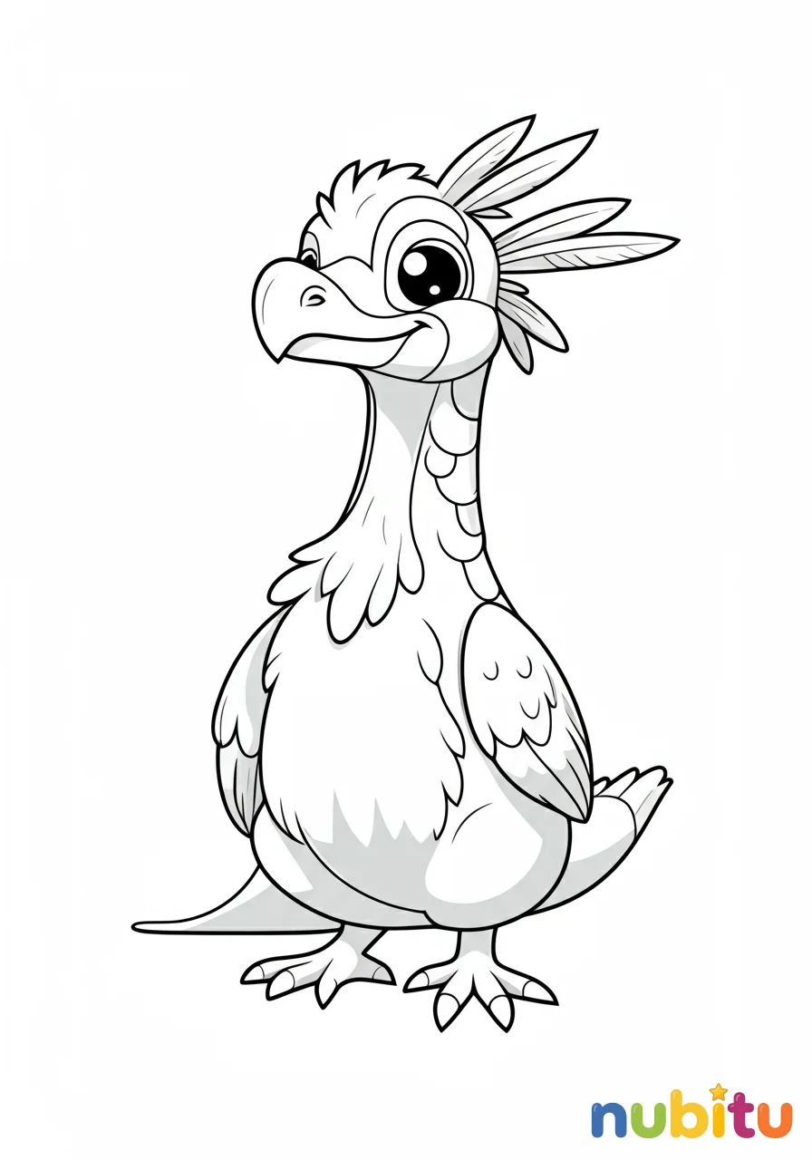 ¡Mira qué amigable es este Anchiornis! Parece que te está sonriendo y esperando que lo llenes de color. ¿Qué colores usarás para sus ojos y su cuerpo? ¡Hazlo el más feliz de todos!