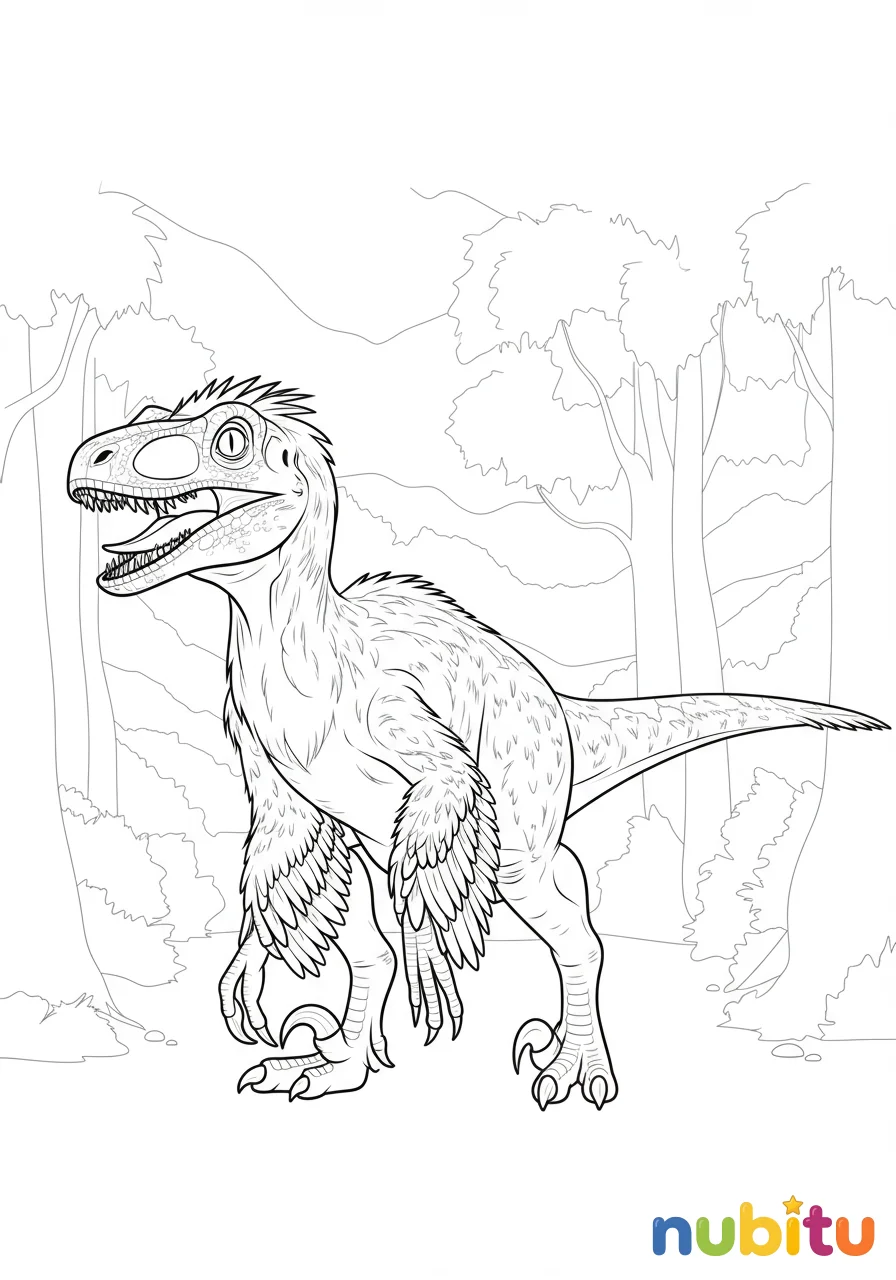 ¡Hola, pequeños artistas y grandes exploradores del tiempo! Hoy nos embarcaremos en un viaje emocionante a la era de los dinosaurios, donde criaturas asombrosas caminaban por la Tierra. ¿Listos para conocer a uno de los más fascinantes? El Austroraptor, un dinosaurio rápido y plumífero, está esperando que le des vida con tus colores. En Nubitu, creemos que cada trazo es una aventura y cada color una historia. ¡Así que afila tus lápices, prepara tus crayones y sumérgete en este mundo prehistórico lleno de magia y creatividad! ¡Vamos a dibujar y aprender juntos!