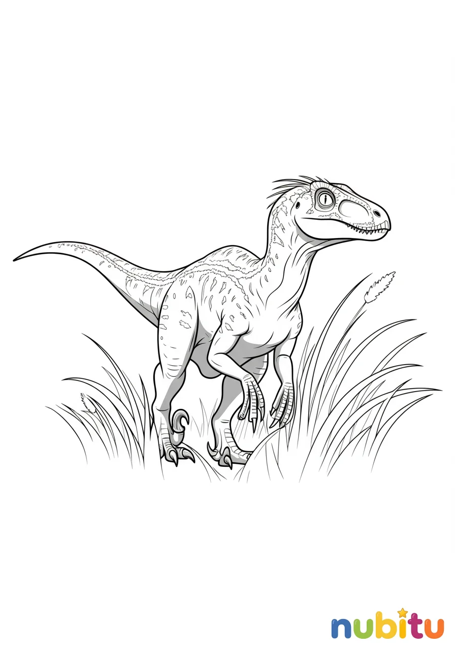 ¡Nuestro Austroraptor está listo para una nueva aventura jurásica! Con sus patitas fuertes y su cola larga, está esperando que lo llenes de vida con tus colores favoritos.