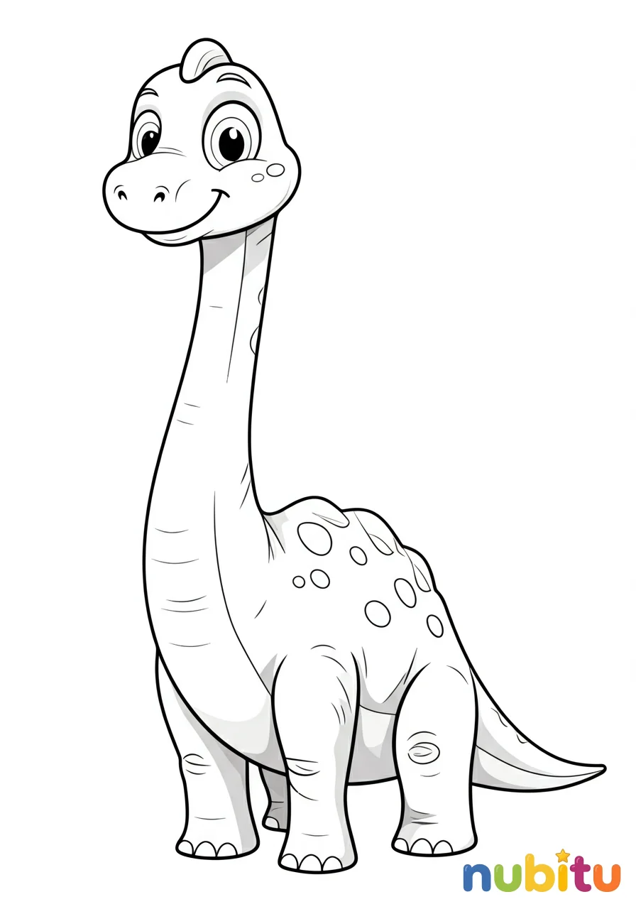 ¡Hola, amiguito! Este braquiosaurio gigante está muy feliz de verte. ¿Qué colores usarás para su largo cuello y su cuerpo enorme? ¡Hazlo brillar con tus crayones!