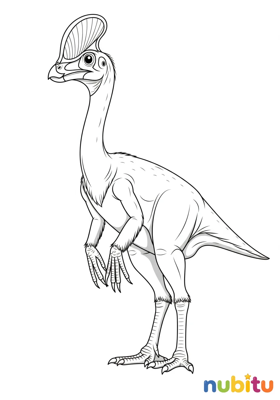 Un Chirostenotes se presenta erguido en una postura majestuosa, mostrando su distintiva estructura corporal y su elegante cresta. Observa con qué detalle puedes capturar su forma única y darle vida.