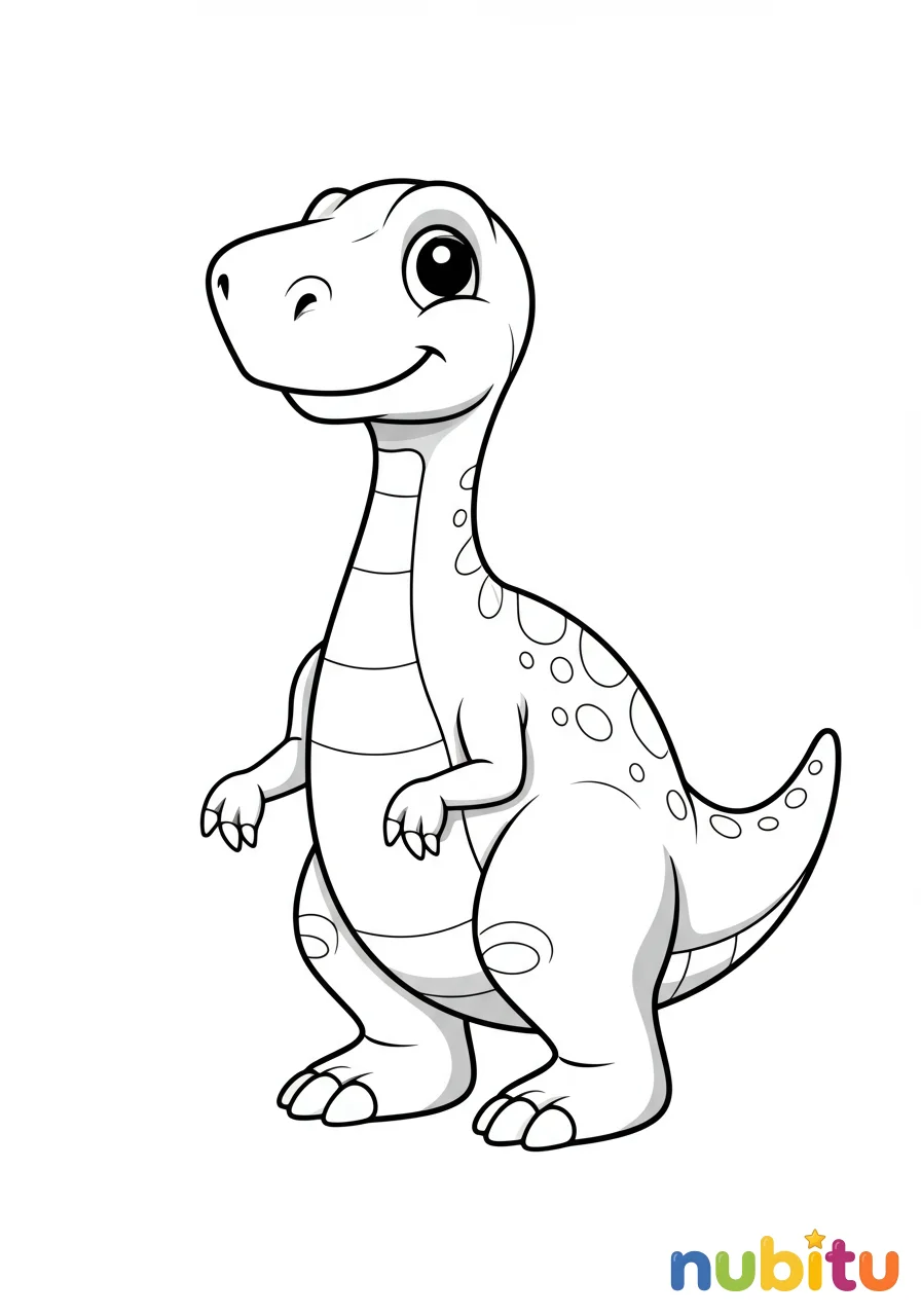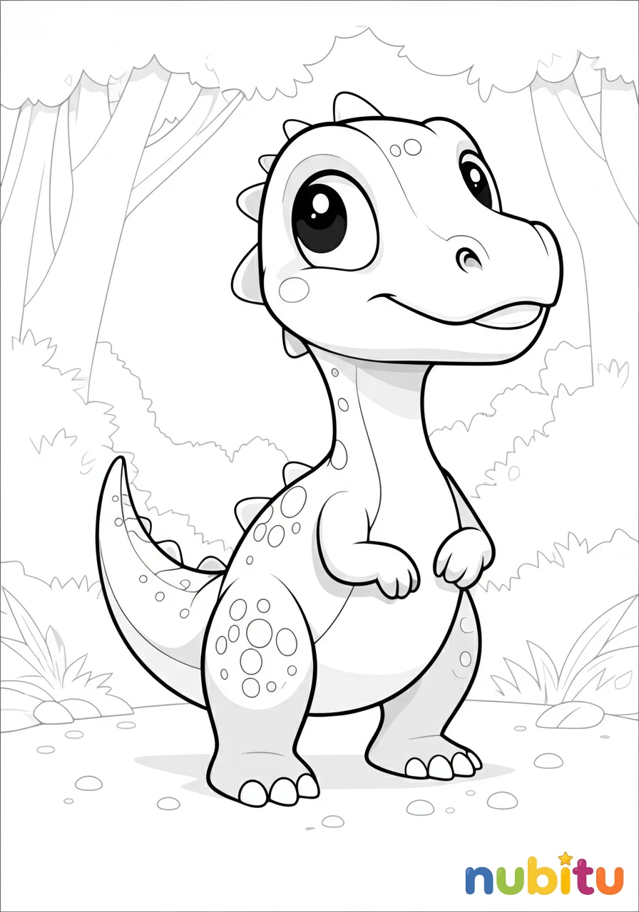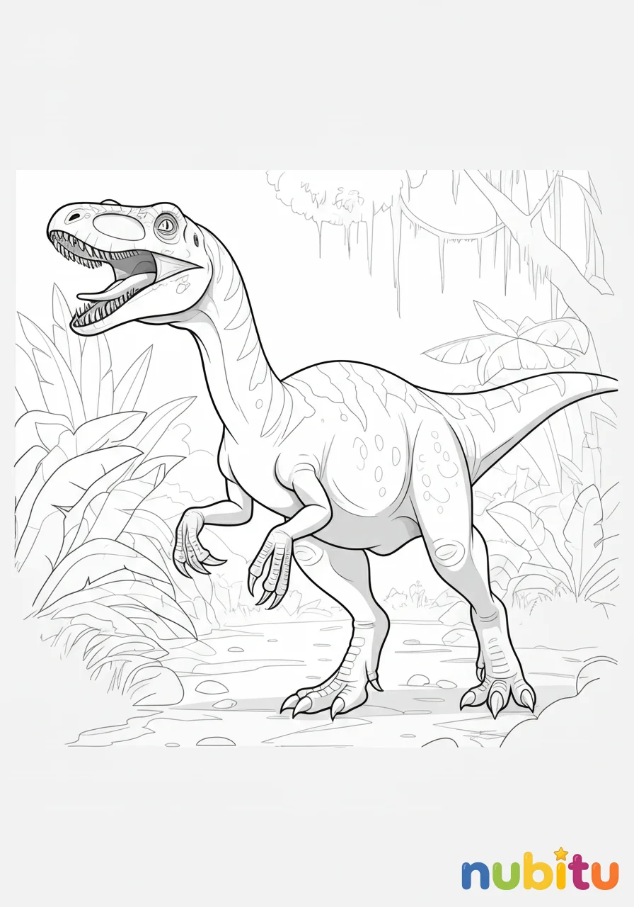 Imagina un Dilong joven explorando su mundo, con sus pequeñas plumas erizadas por la curiosidad. Este dibujo captura su espíritu aventurero y su mirada amigable, invitando a los pequeños artistas a darle vida con sus colores.