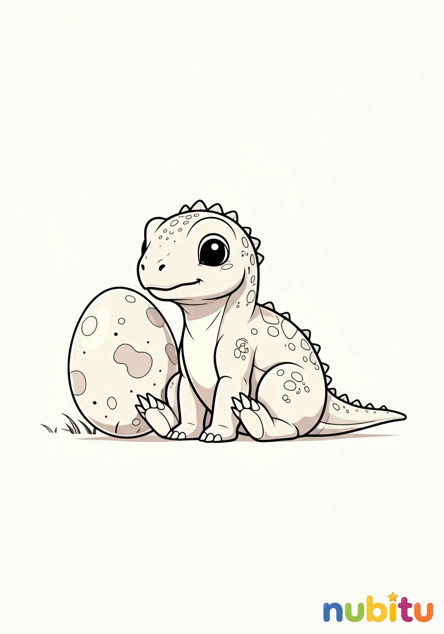 Un tierno bebé Dilong acaba de salir de su cascarón, con los ojos grandes y llenos de asombro. Su suave piel y sus primeras plumas lo hacen irresistible, listo para ser coloreado con la calidez y dulzura que solo un pequeño dinosaurio puede inspirar.