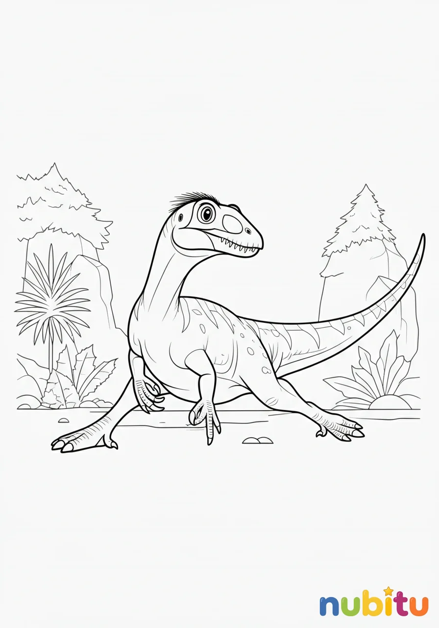 Imagina las aventuras con este Eosinopteryx soñador. ¡Usa tus colores favoritos para darle vida a este pequeño explorador!