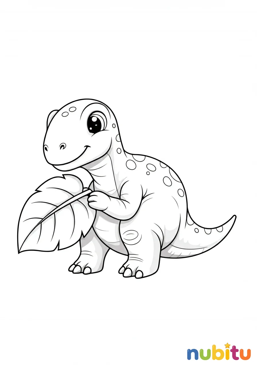 Un adorable Ignavusaurus bebé, lleno de energía, juega con una hoja gigante, mirando con ojos curiosos.