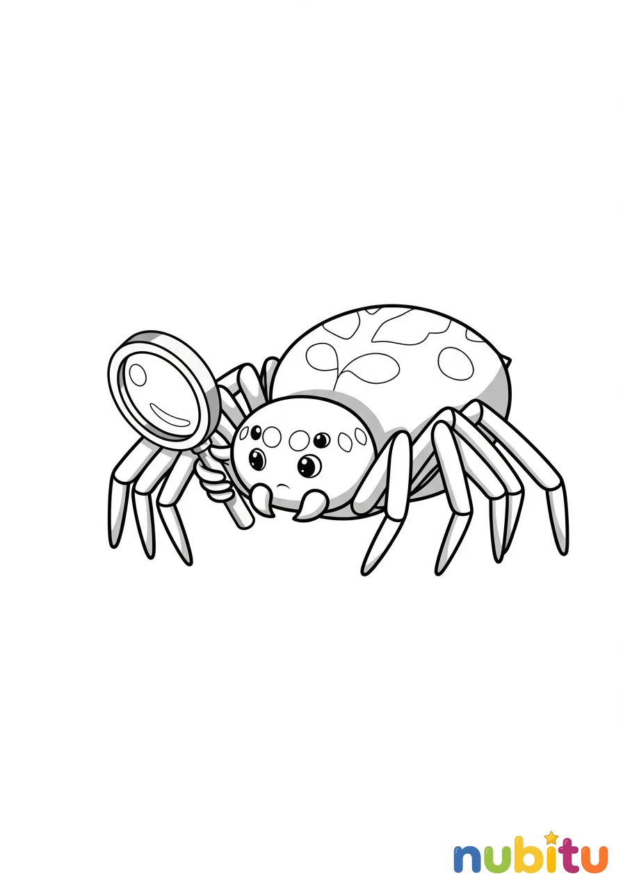 Esta arañita aventurera, con una lupa imaginaria, examina cada detalle de su pequeño mundo, lista para aprender y dibujar. Nos invita a mirar de cerca y encontrar la magia en lo diminuto.