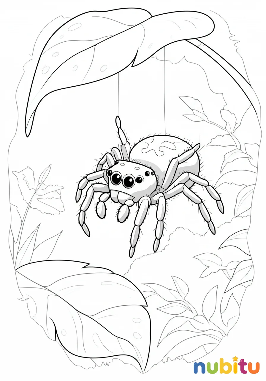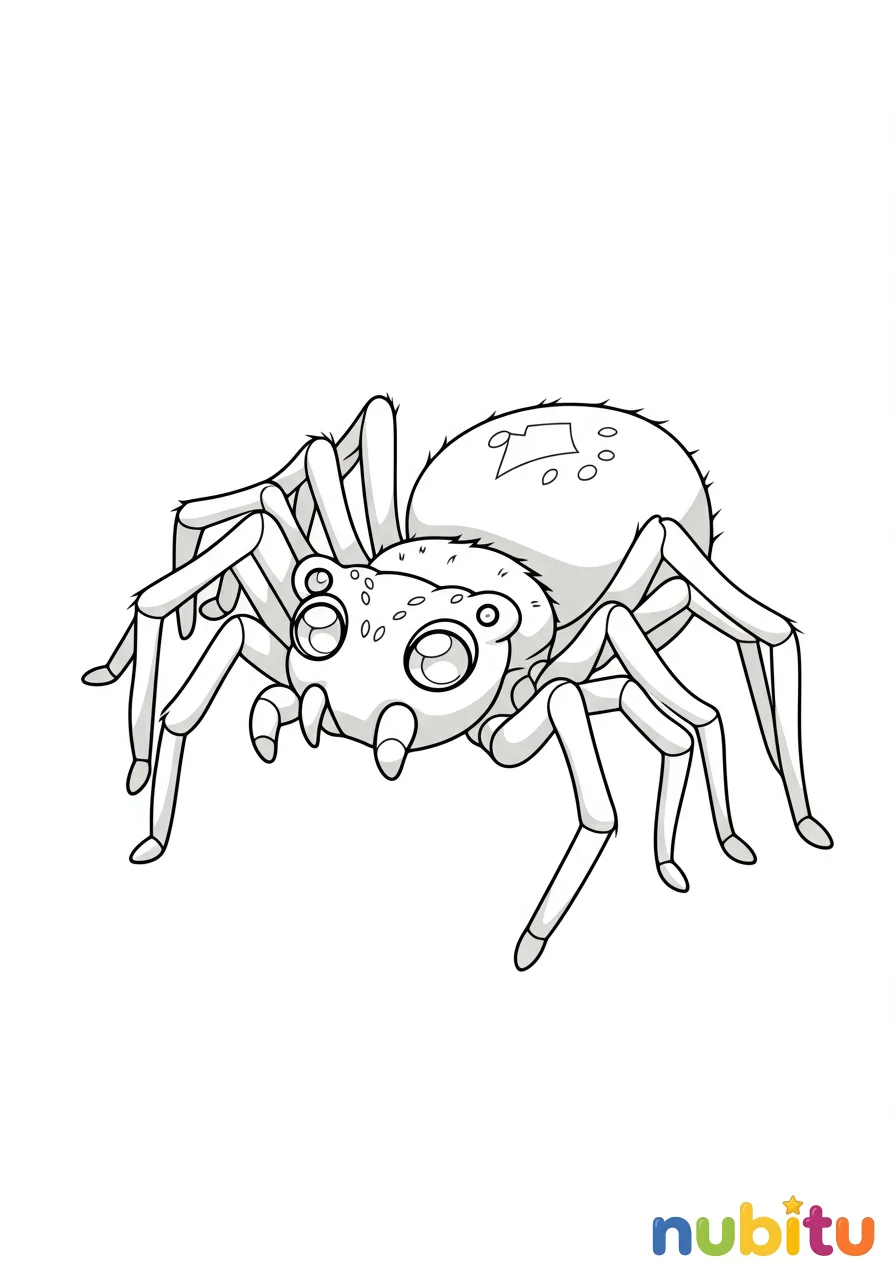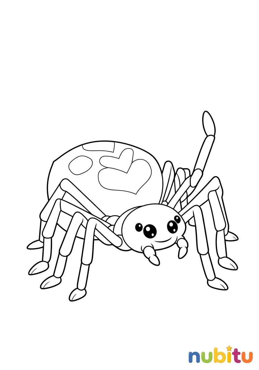 Esta arañita es muy curiosa y le encanta explorar. ¿De qué color serán sus grandes ojos para ver todo a su alrededor? ¡Usa tus colores favoritos para hacerla muy especial!