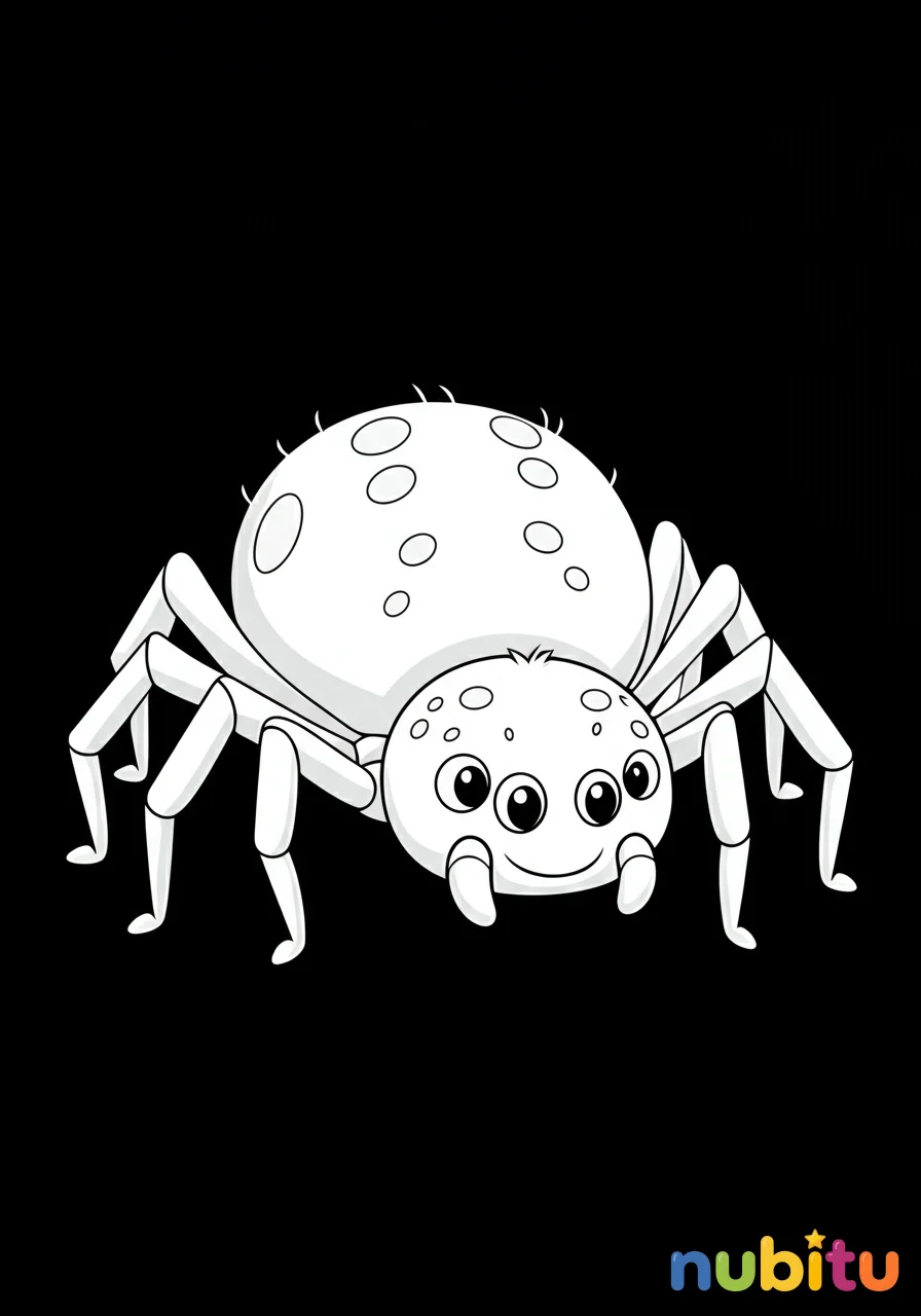 ¡Mira qué arañita tan feliz! Está lista para que le des los colores más bonitos a sus patitas y a su carita sonriente. ¡Imagina los colores más divertidos para ella!