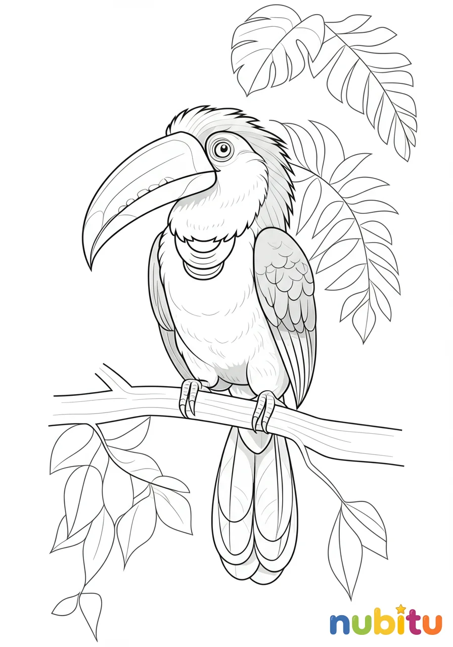 ¡Parece que este arasari está a punto de cantar una canción! Ayúdale a brillar con tus colores favoritos. ¡Imagina qué melodía tan bonita tendrá!