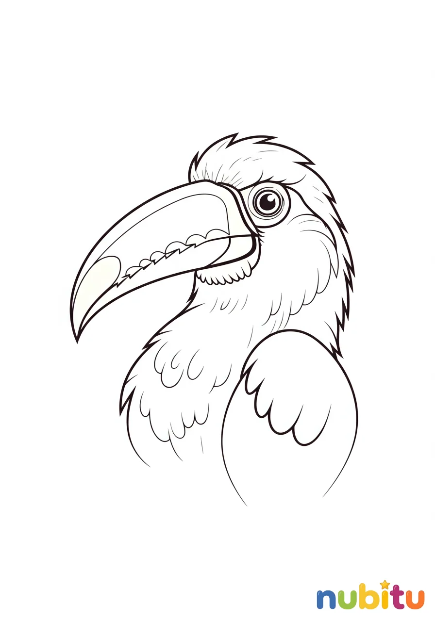 Este amiguito arasari te mira con cariño. Puedes pintarlo con los colores más alegres que encuentres. ¡Seguro que le encantará tu obra de arte!