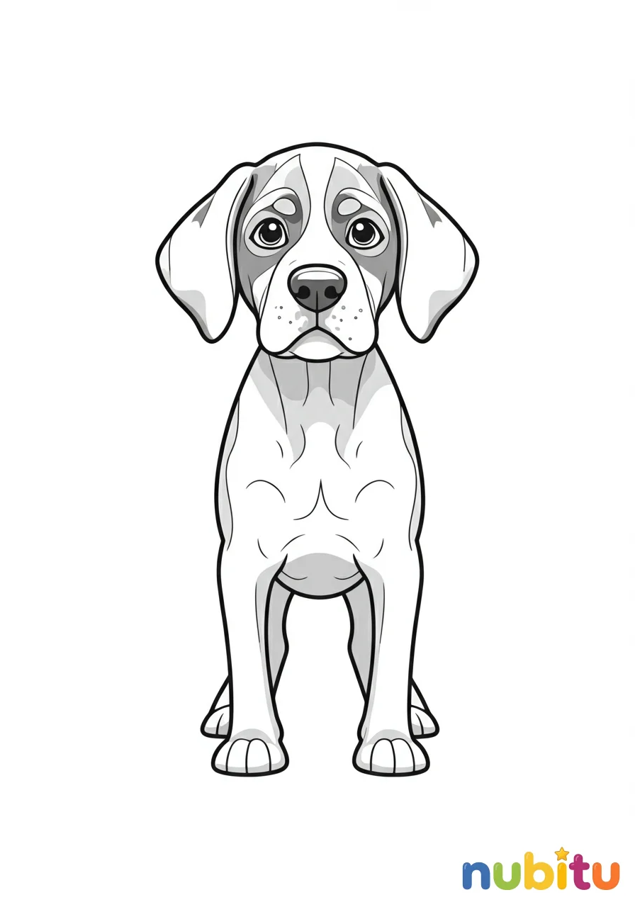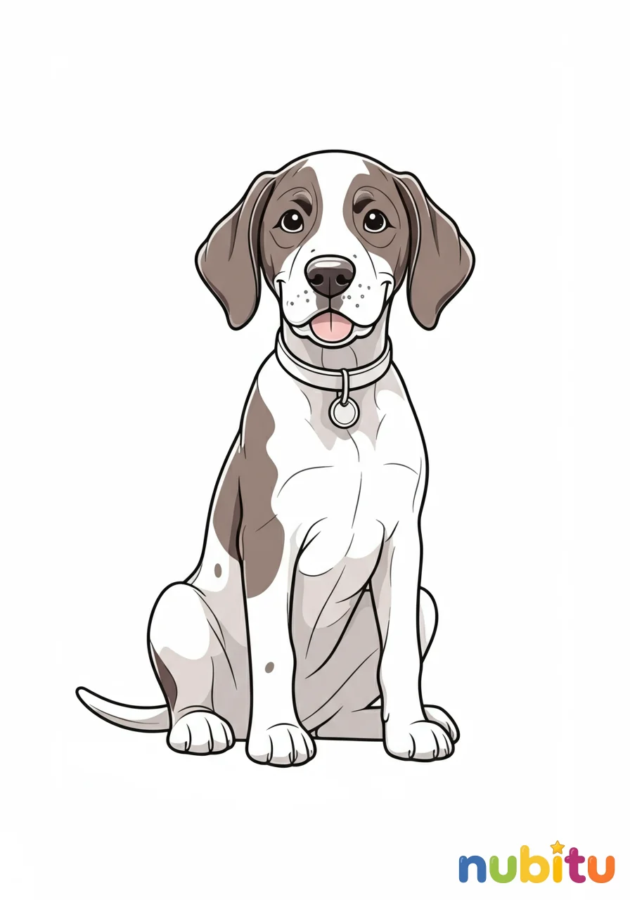 ¡Mira a este amigable braco! Está parado, listo para jugar y esperando que lo llenes de los colores más alegres que puedas imaginar. ¿De qué color será su pelaje?