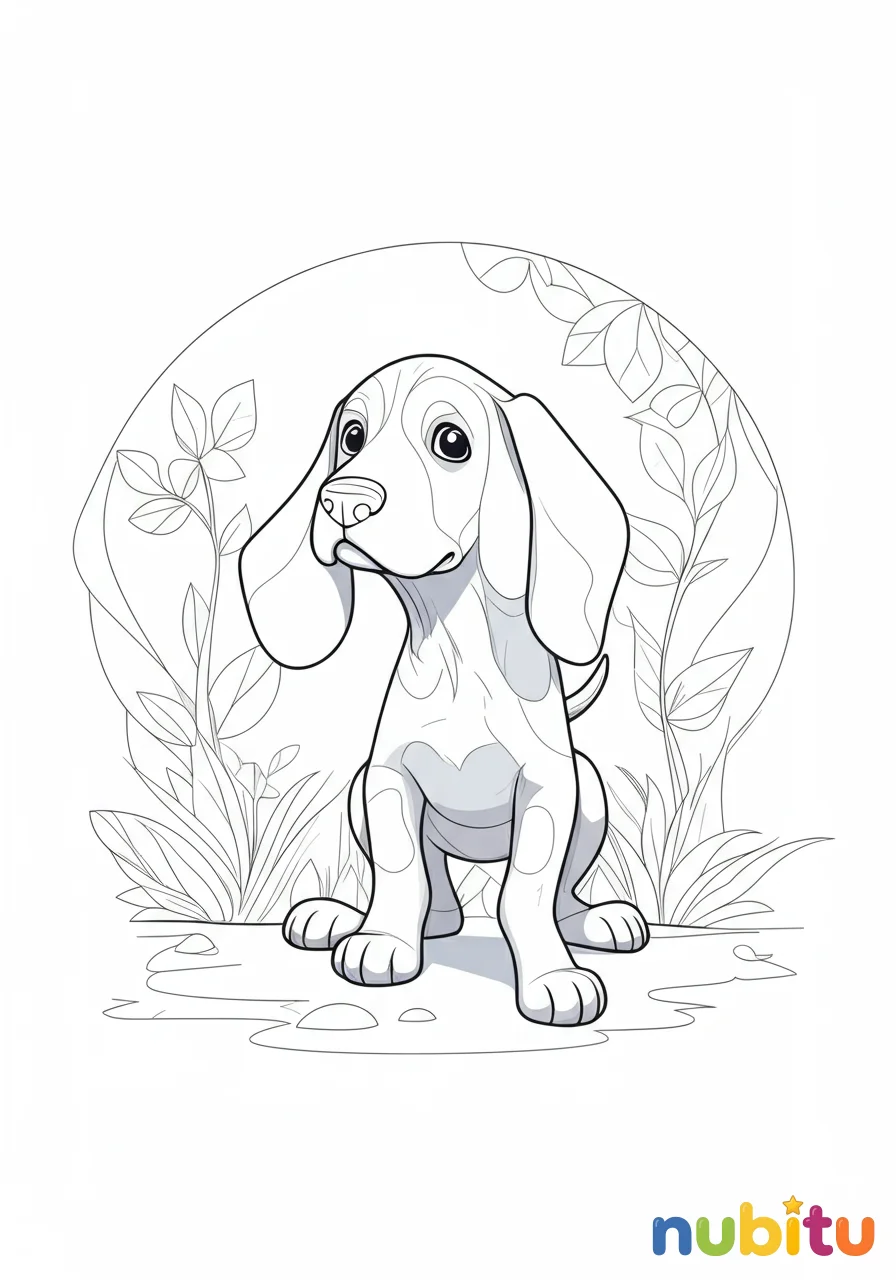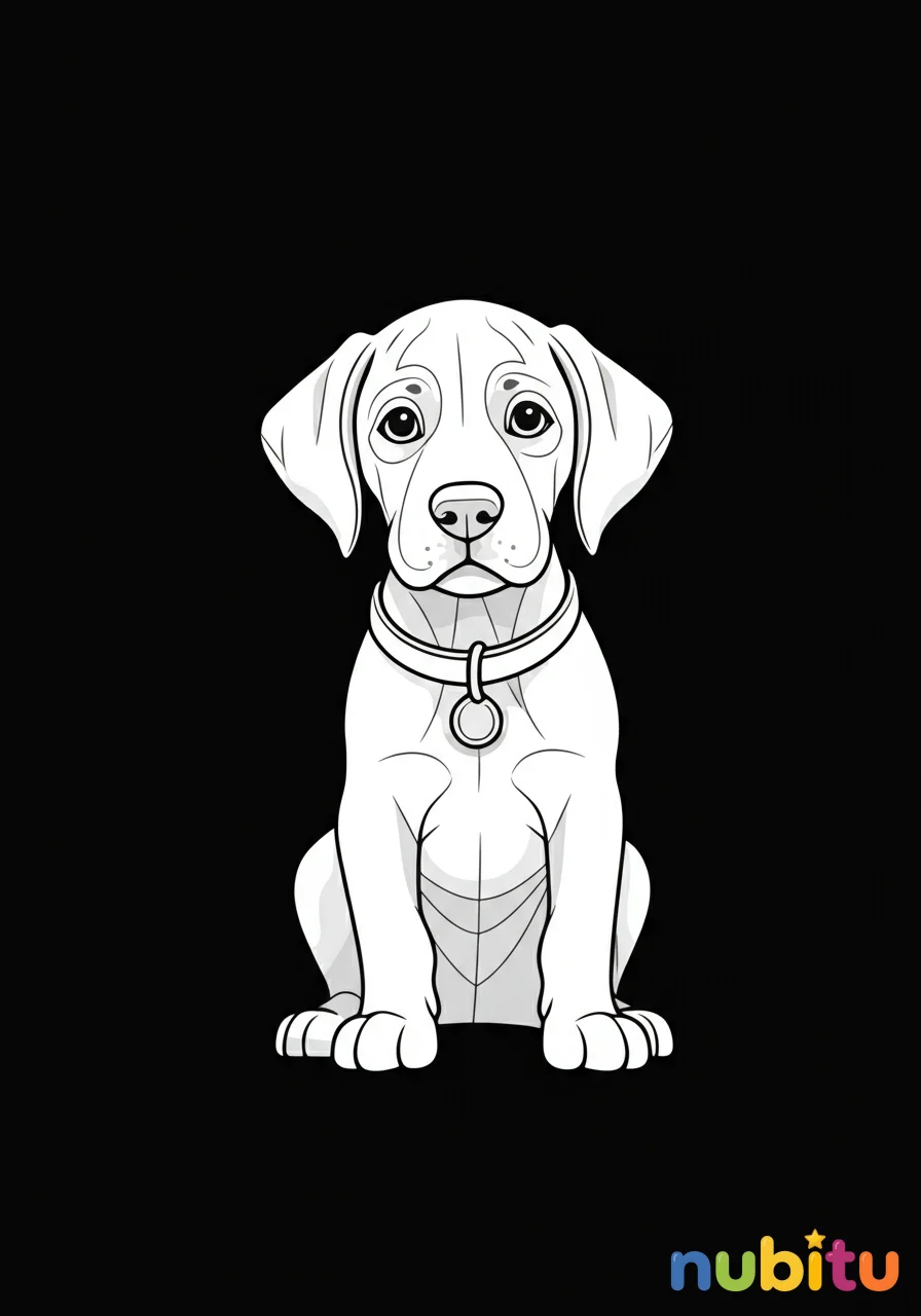 Este dulce braco está sentado, con una gran sonrisa esperando que le des vida con tus crayones. ¡Imagina sus orejas suaves y su cola moviéndose!
