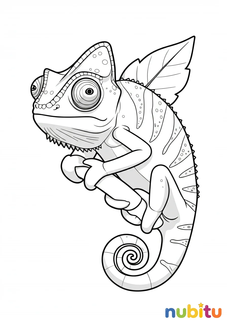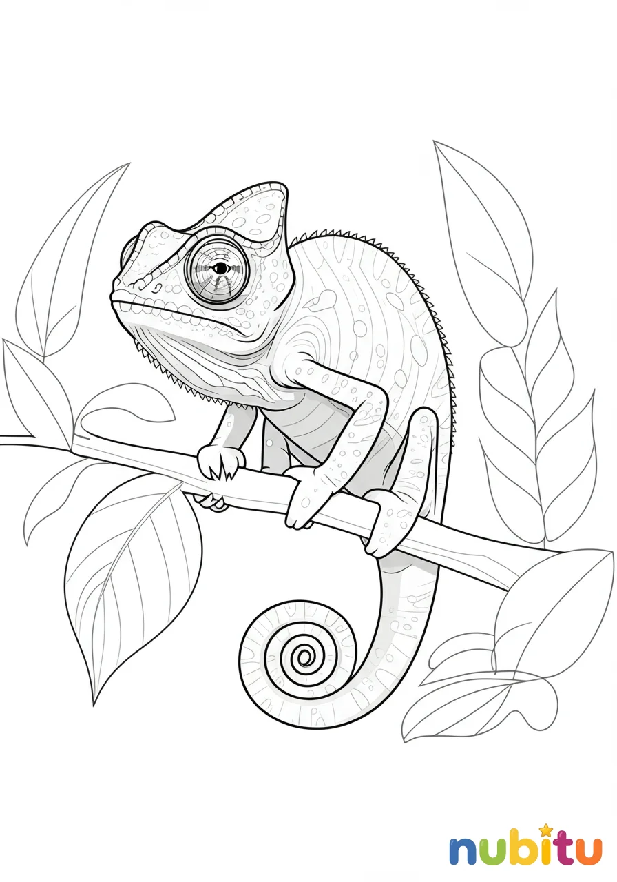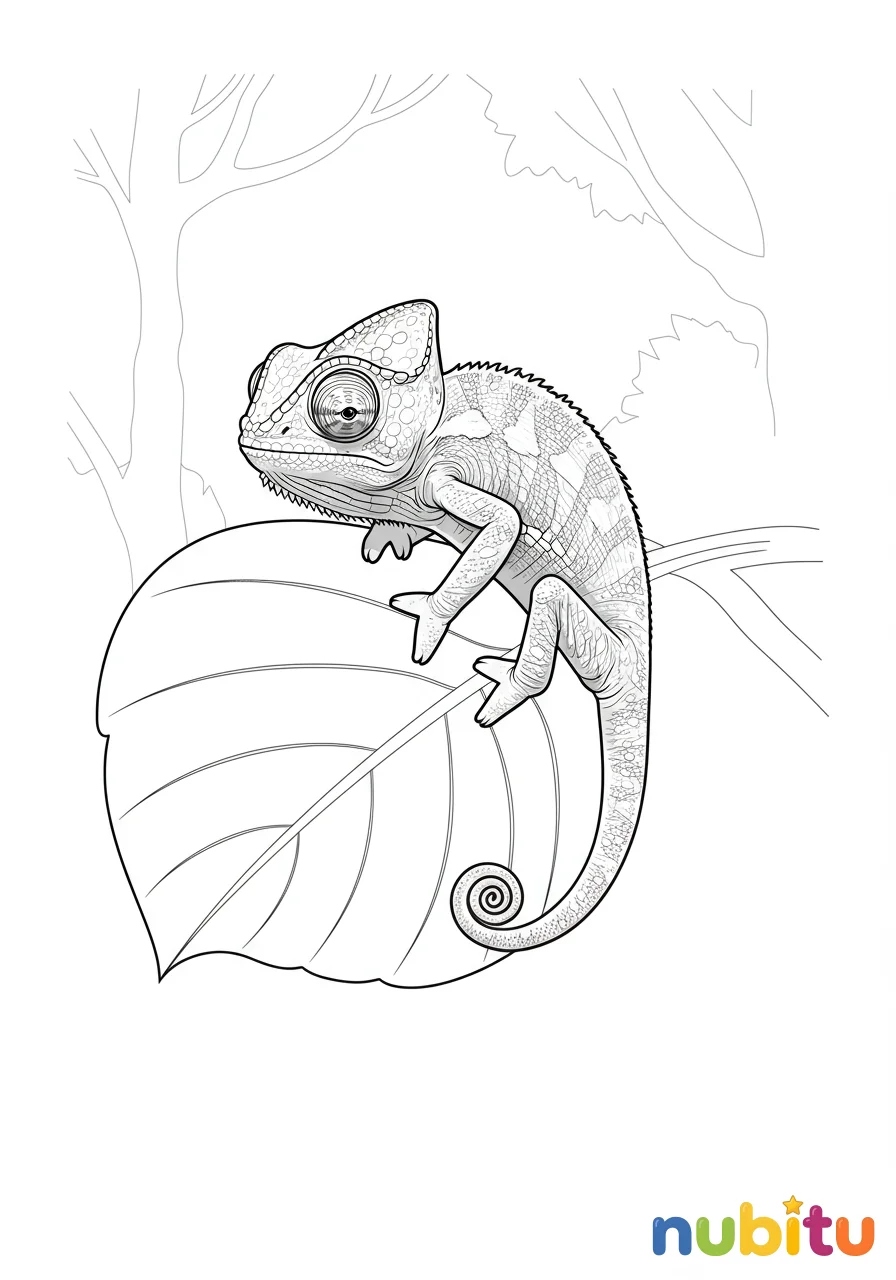 ¡Este pequeño camaleón enano de hoja está listo para tu pincel! Imagina qué colores le darán vida para que se camufle perfectamente. ¡Espera tu creatividad!
