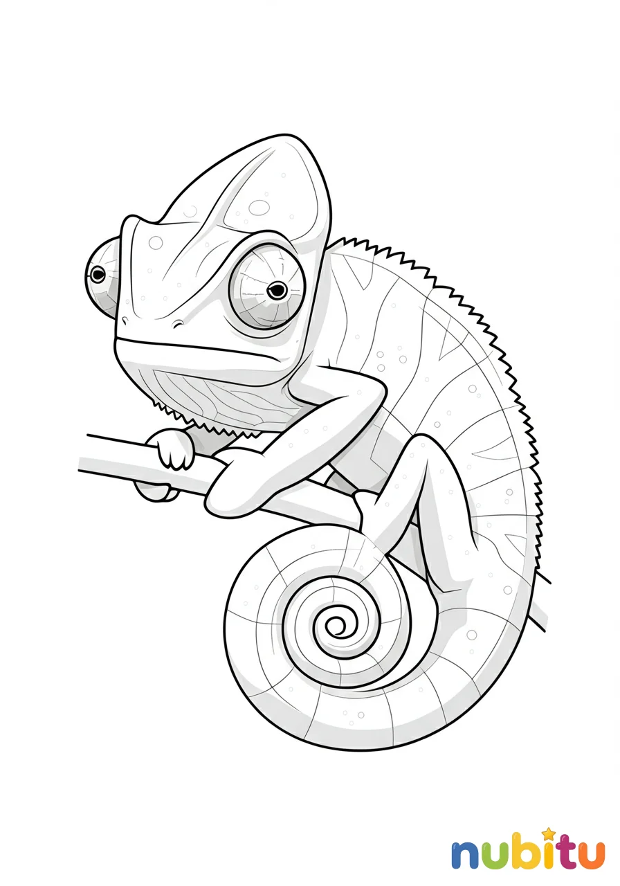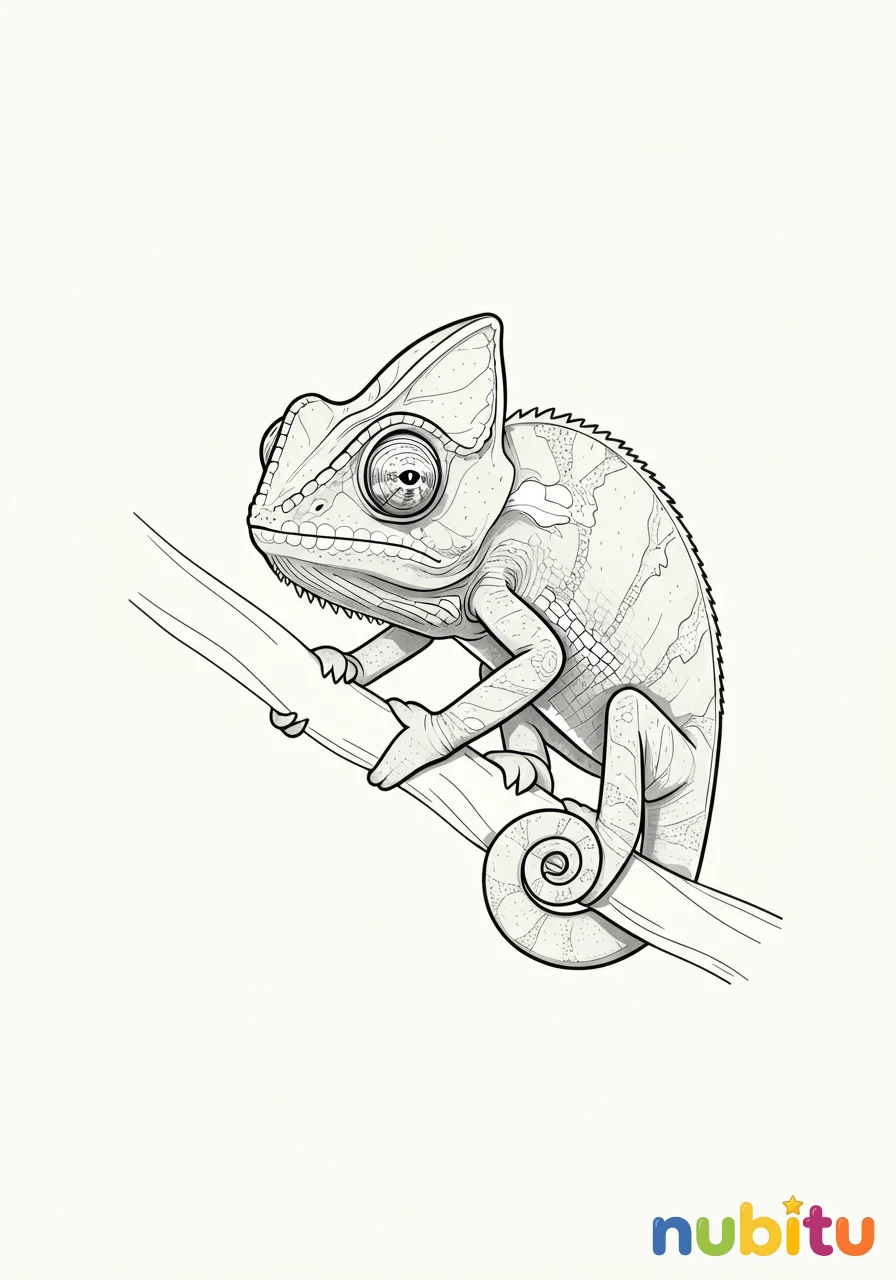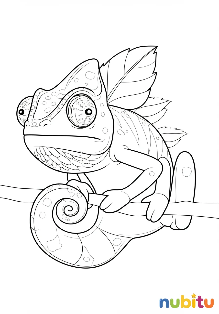 ¡Este pequeño camaleón enano de hoja está listo para tu pincel! Imagina qué colores le darán vida para que se camufle perfectamente. ¡Espera tu creatividad!