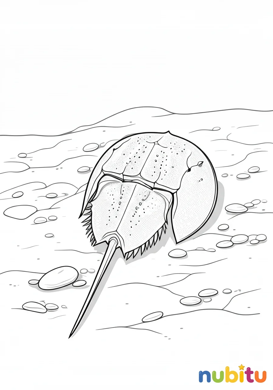 Cangrejo Herradura juvenil, criatura ancestral marina para colorear
