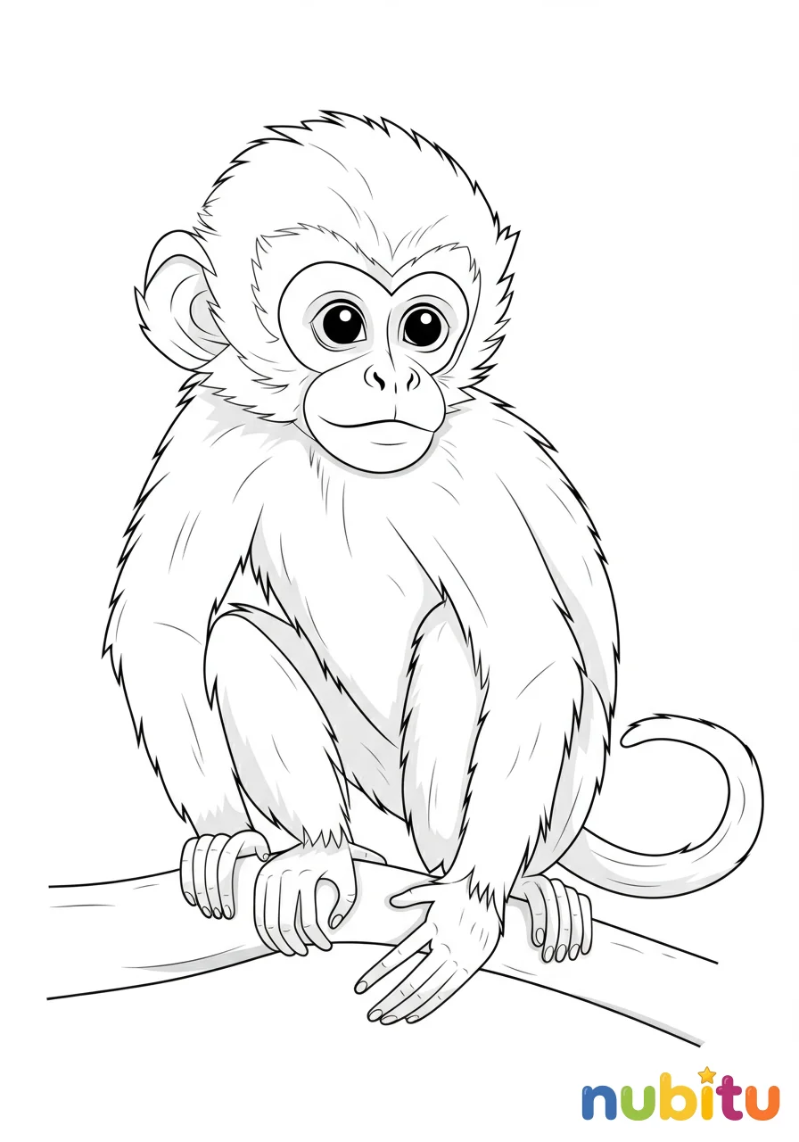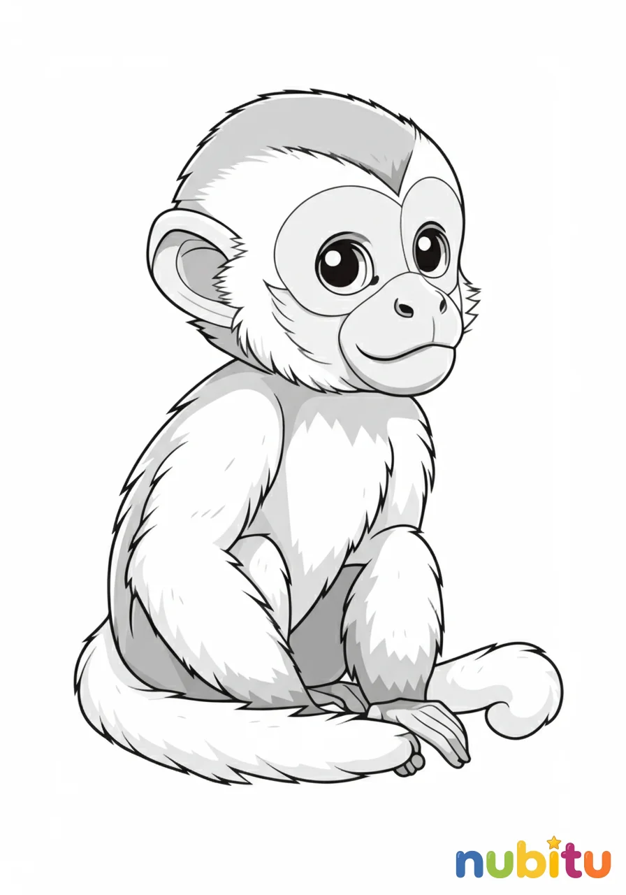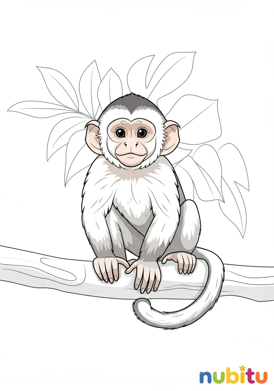 ¡Parece que este capuchino está listo para una gran aventura! Está esperando tus crayones para llenarlo de vida. ¿Será marrón, negro o tendrá un pelaje de fantasía? ¡Tú decides!