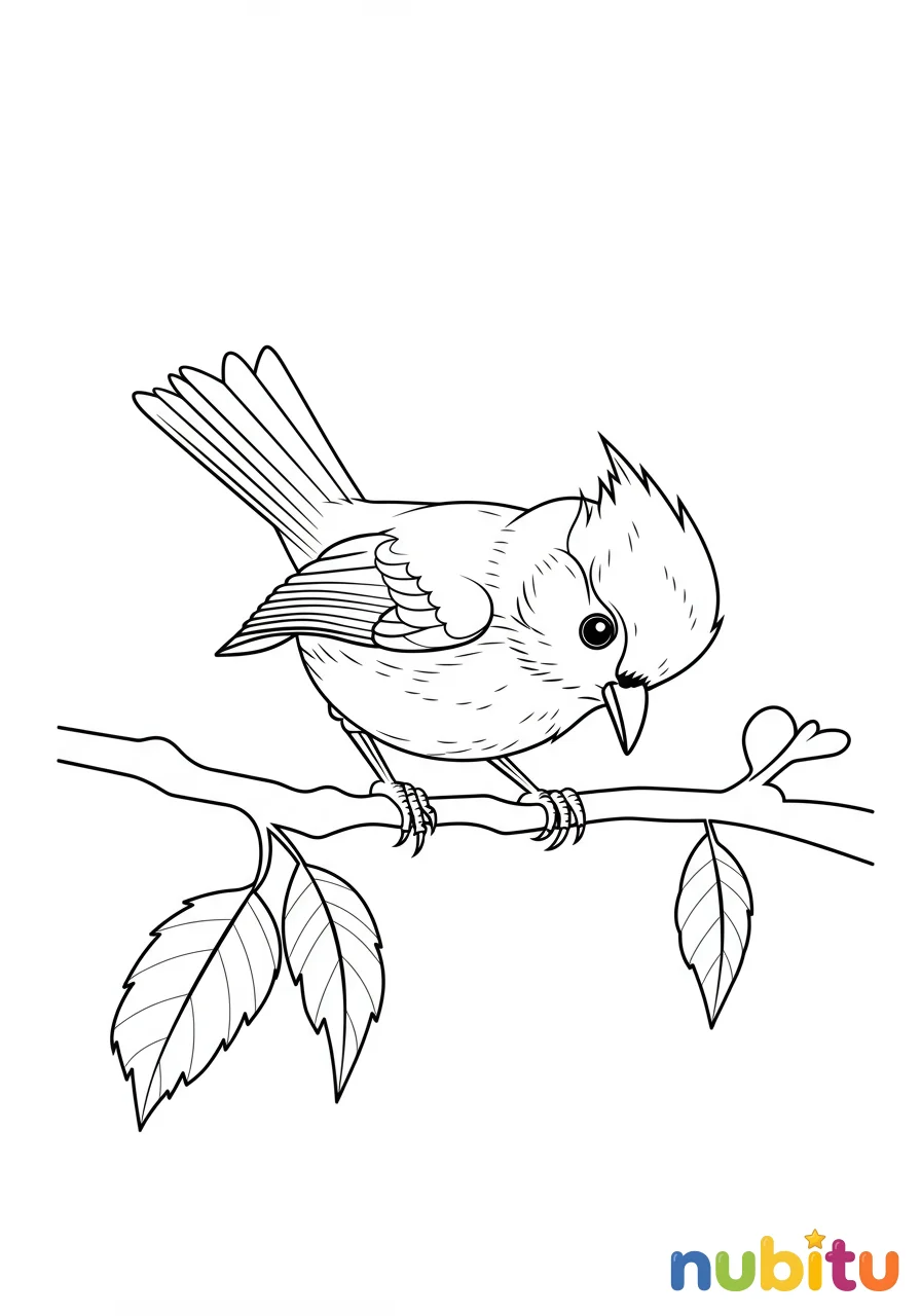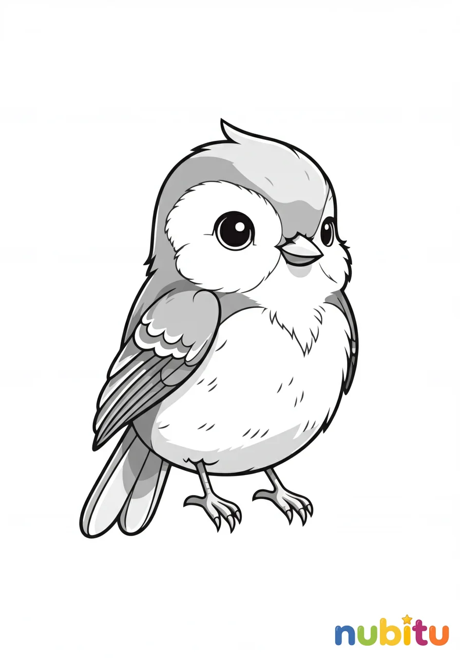 ¡Hola, amiguito! Este carbonero te saluda con su piquito. ¿De qué color será su pecho amarillo y su cabecita negra? ¡Tú decides!