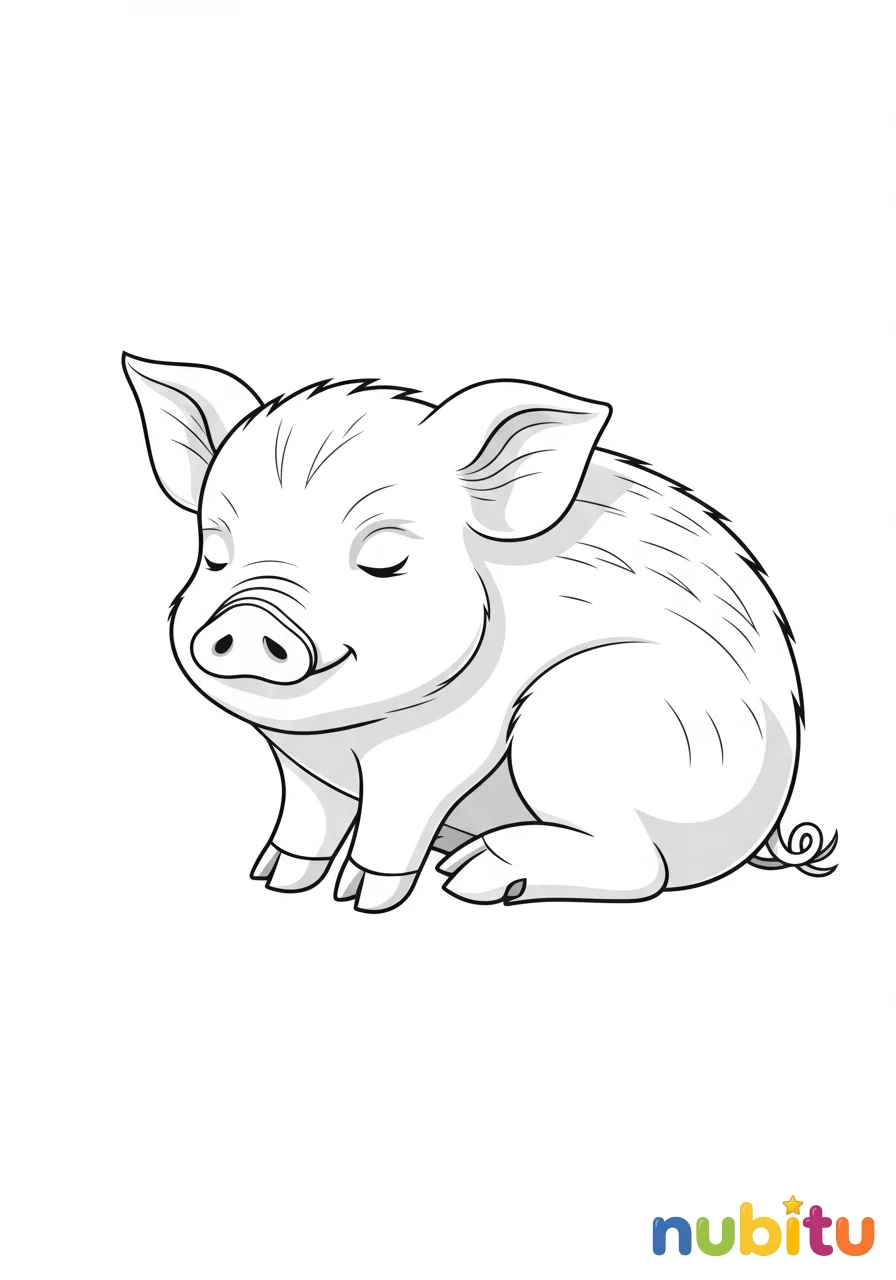 Después de un largo día de aventuras por la dehesa, este cerdito ibérico está tomando una siesta muy dulce. ¿Qué colores suaves usarás para su sueño?