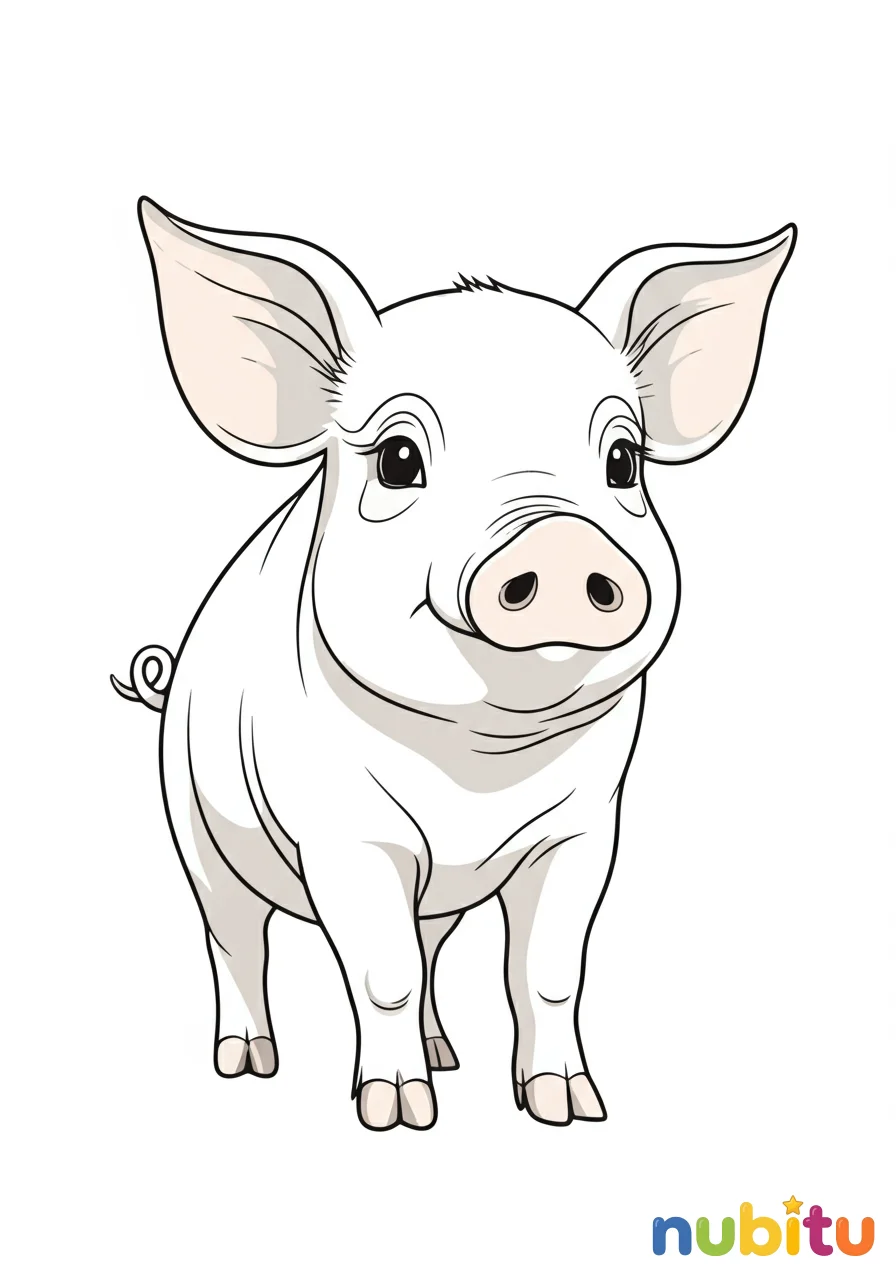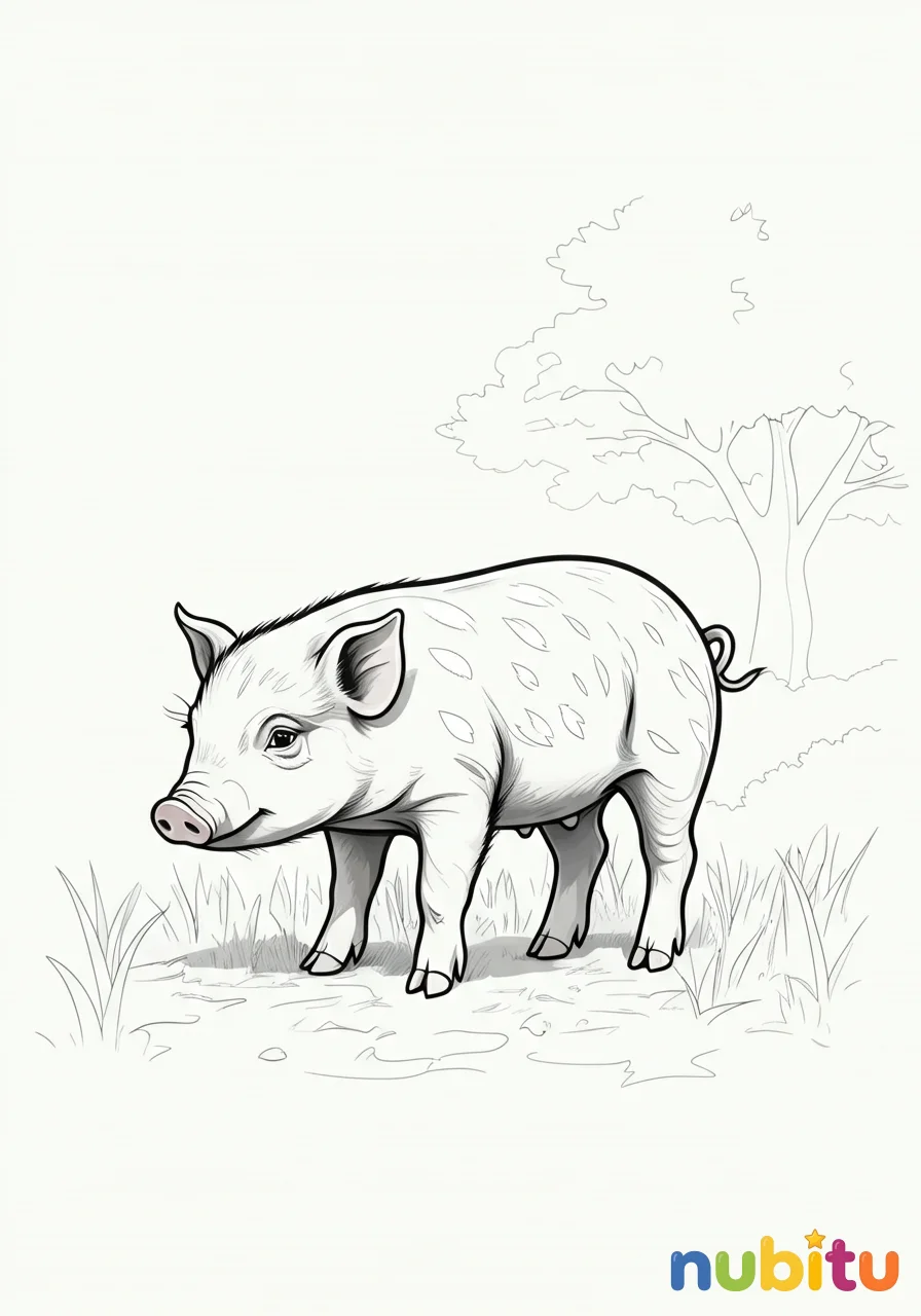 ¡Este cerdito ibérico tiene un espíritu aventurero y está listo para explorar! ¿De qué color crees que son sus orejas y su hocico? ¡Colorea con alegría!