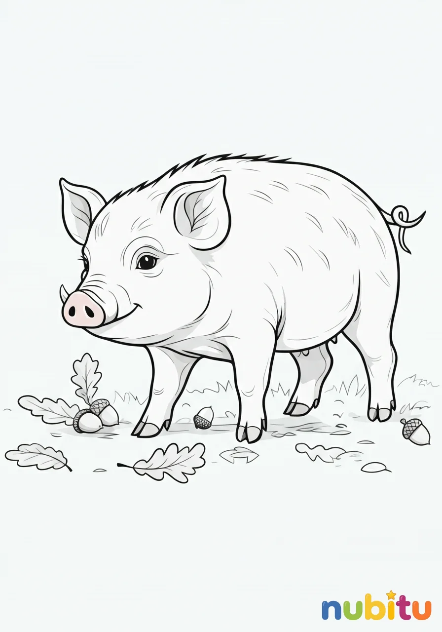 ¡Mira a este cerdito ibérico dando un salto de alegría! Imagina que está explorando la dehesa. ¿Qué colores usarás para que su salto sea el más divertido?