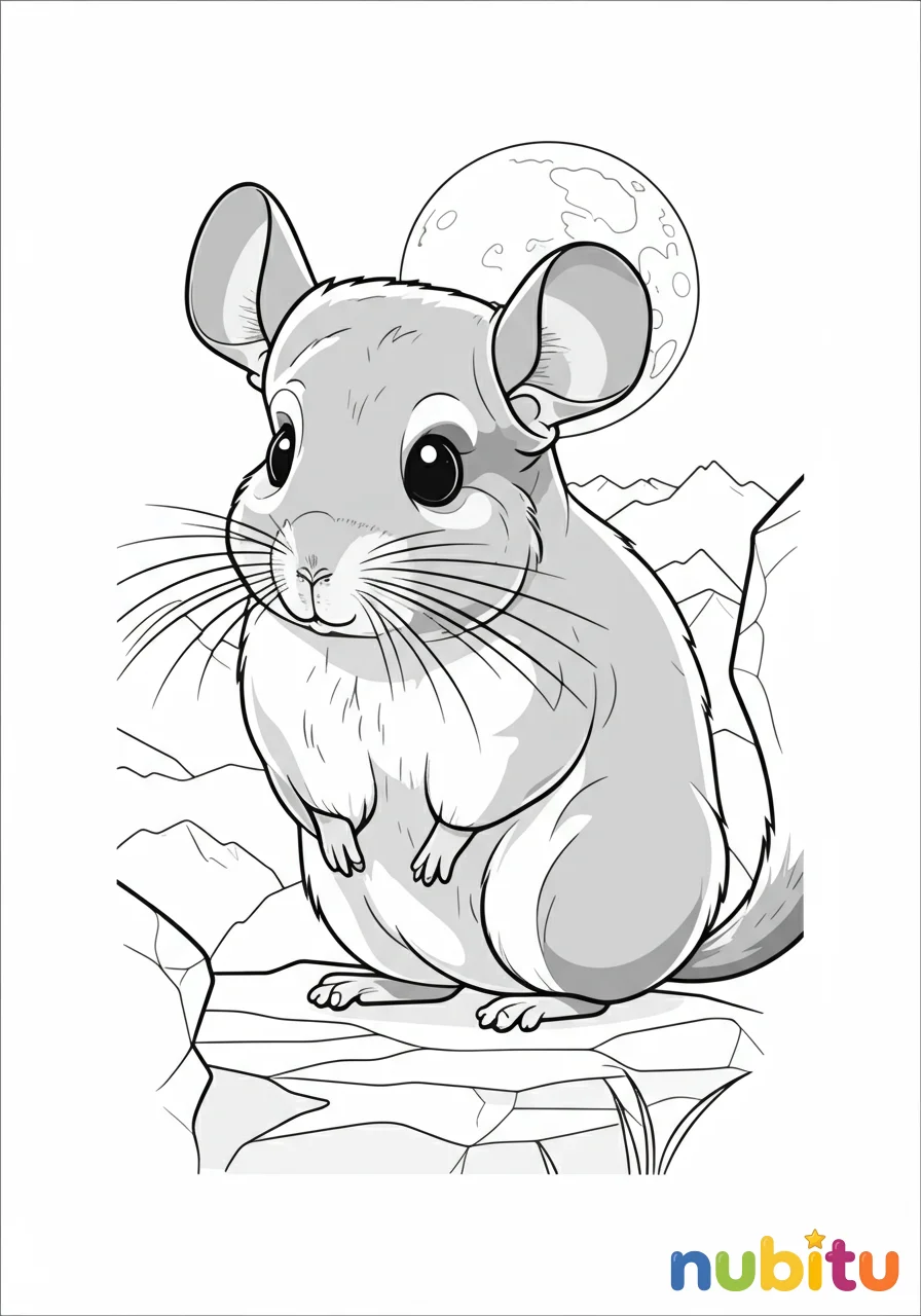 Mira a esta chinchilla tan tierna. Parece que está soñando con un mundo lleno de colores. ¿Qué colores usarás para hacer sus sueños realidad? ¡Diviértete coloreando cada detalle!