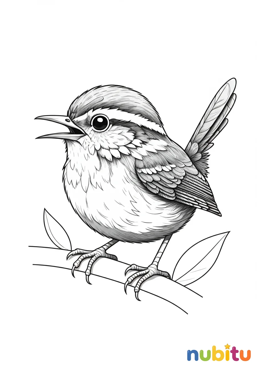 ¡Qué chochín tan contento! Parece que está cantando una hermosa melodía solo para ti. ¿De qué colores lo pintarás para que su canto sea aún más dulce?