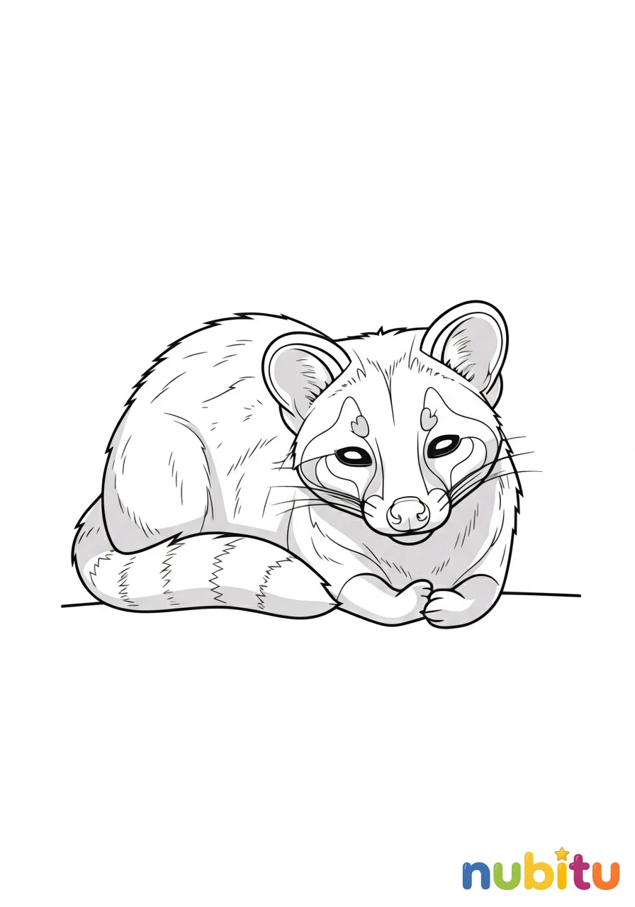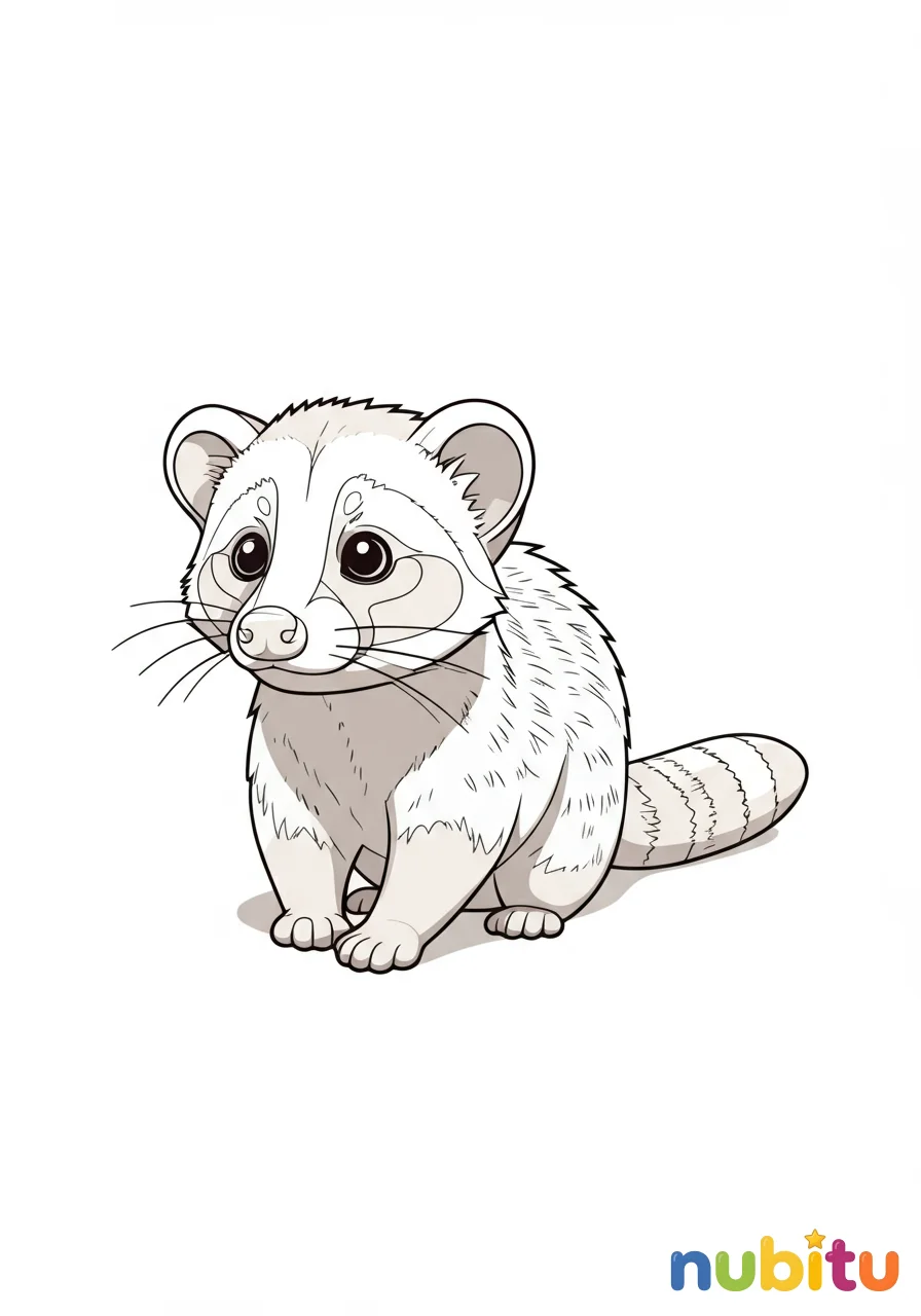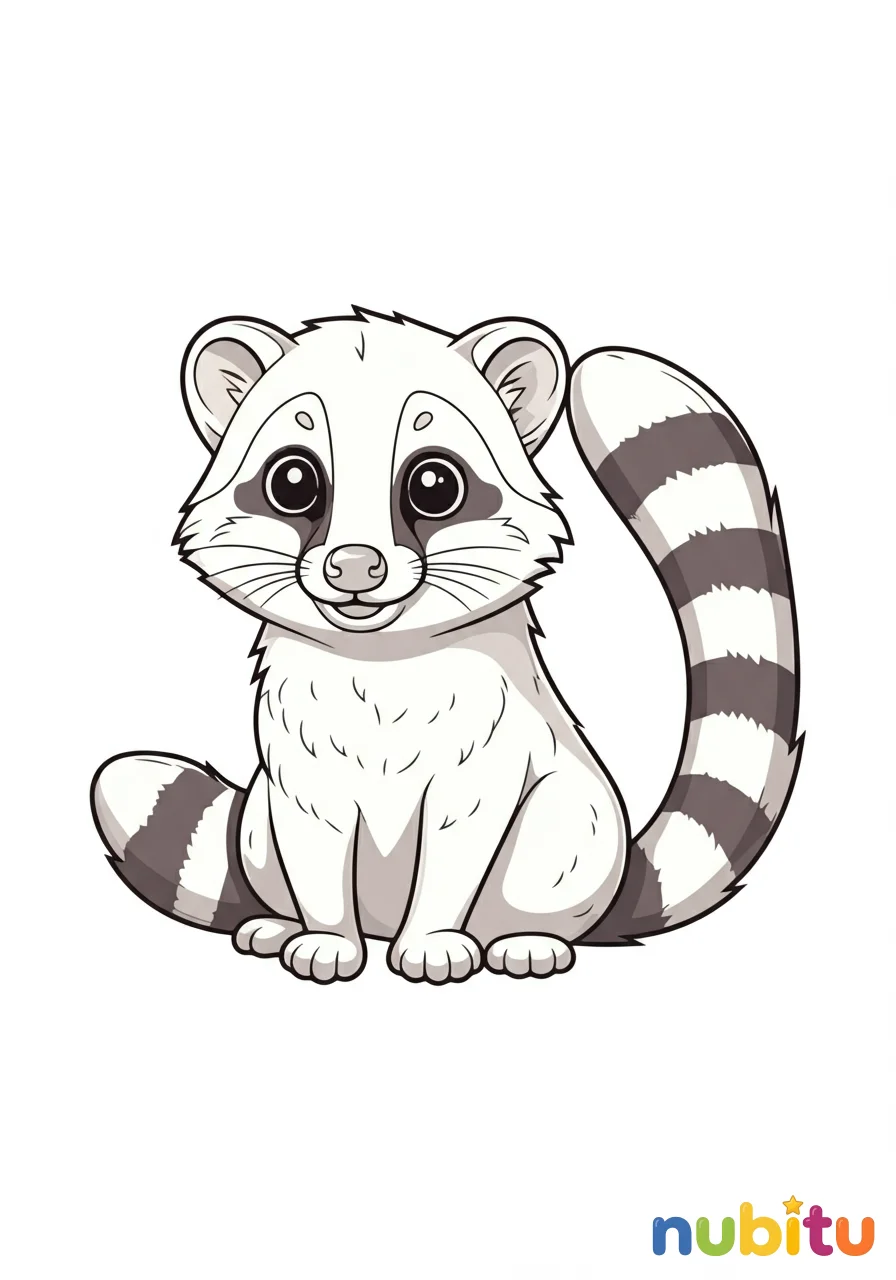 ¡Mira qué adorable cachorro de civeta! Está listo para jugar y espera que lo llenes de colores vibrantes. ¿Qué tonos elegirás para su suave pelaje?