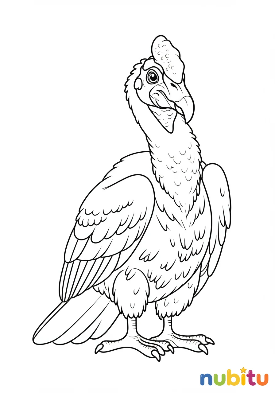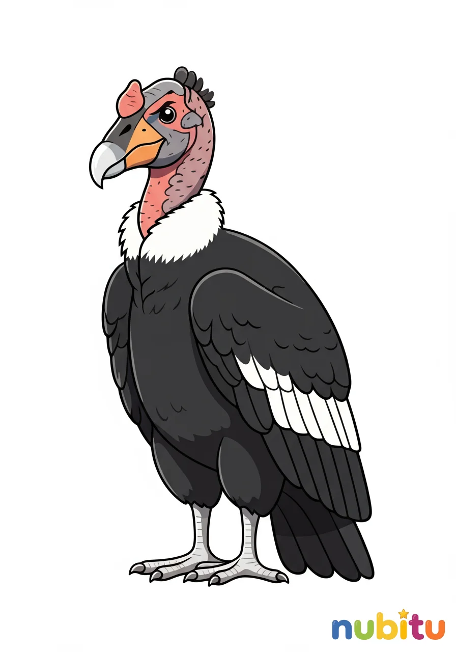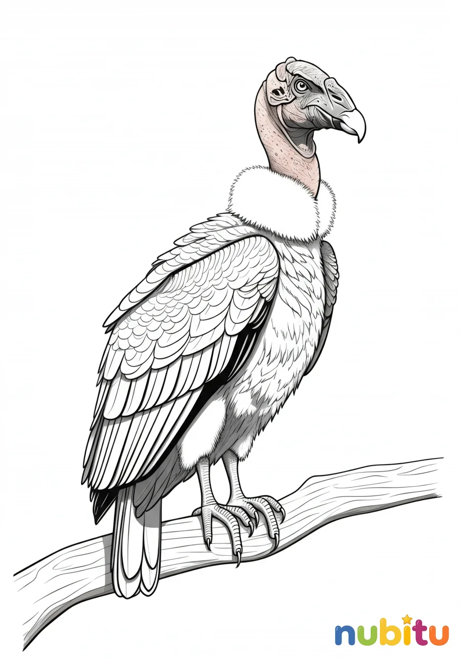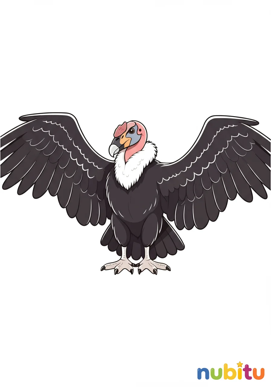 Este cóndor parece un rey de los cielos, mirando con orgullo. ¿Qué colores usarás para su pico fuerte y su cabeza sin plumas? ¡Haz que brille con tus colores más brillantes!