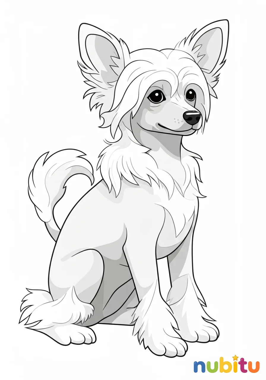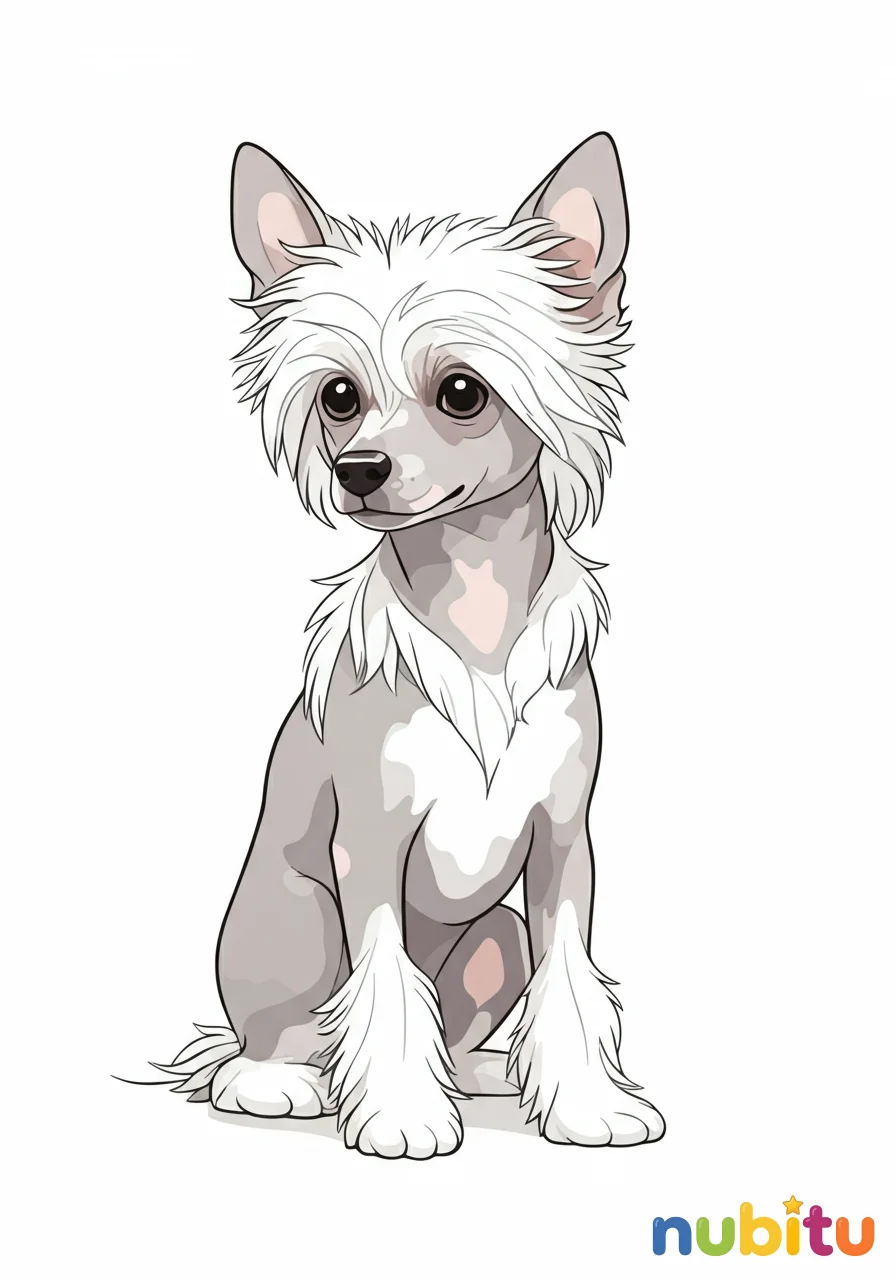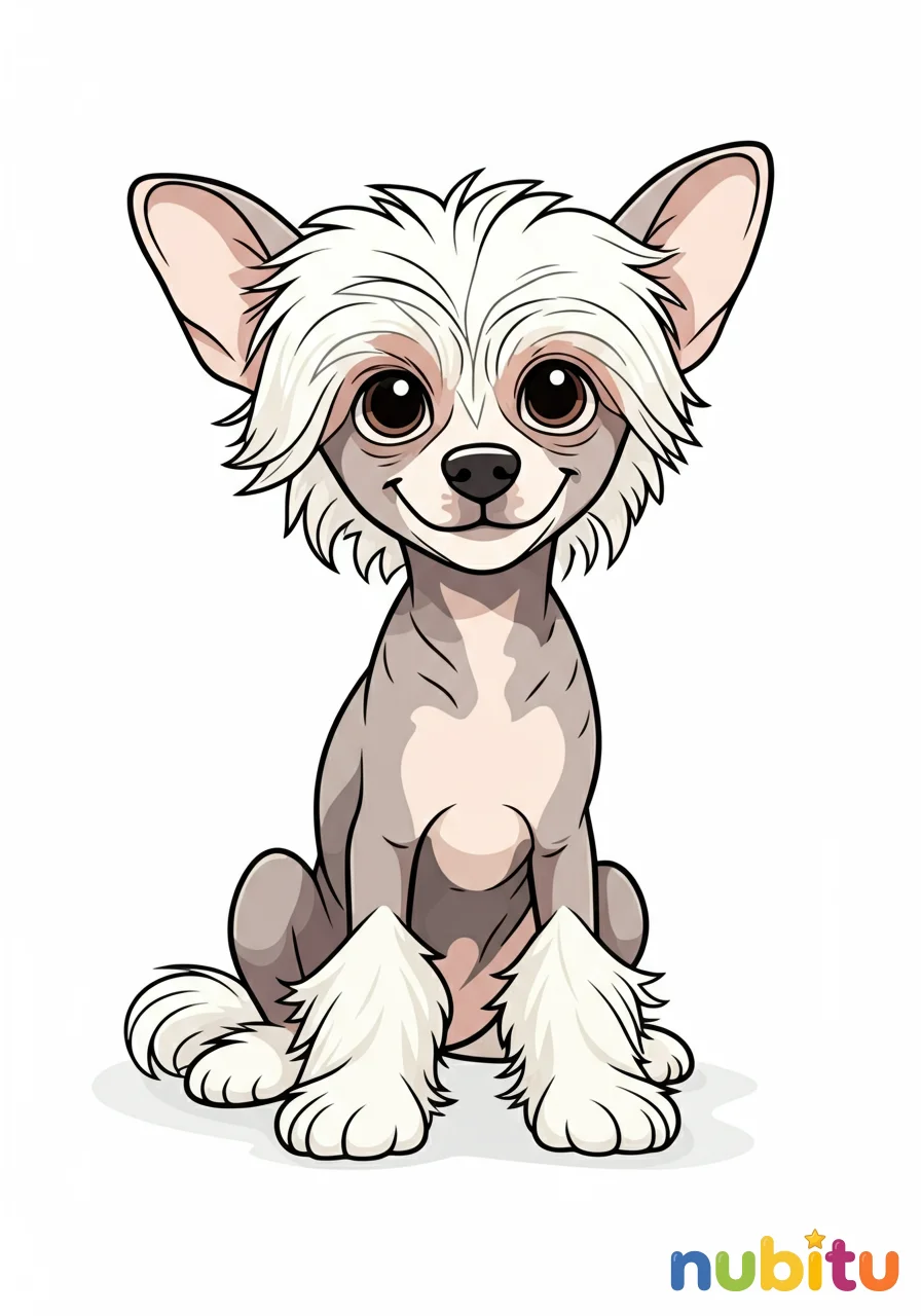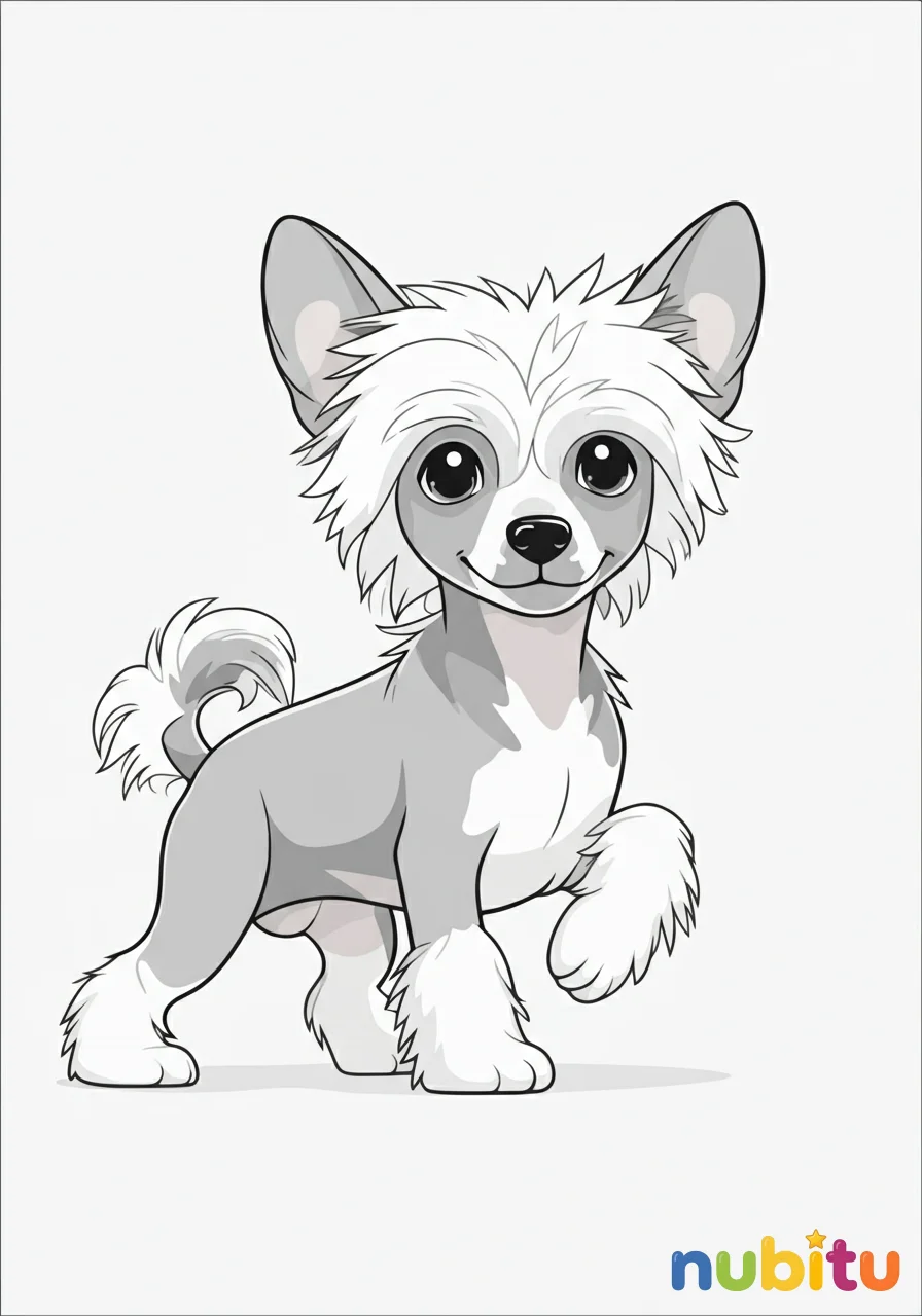 Mira a este Crestado Chino tan divertido, ¡está listo para jugar contigo! ¿De qué color será su pelito suave y sus orejitas? ¡Usa tus colores más alegres!