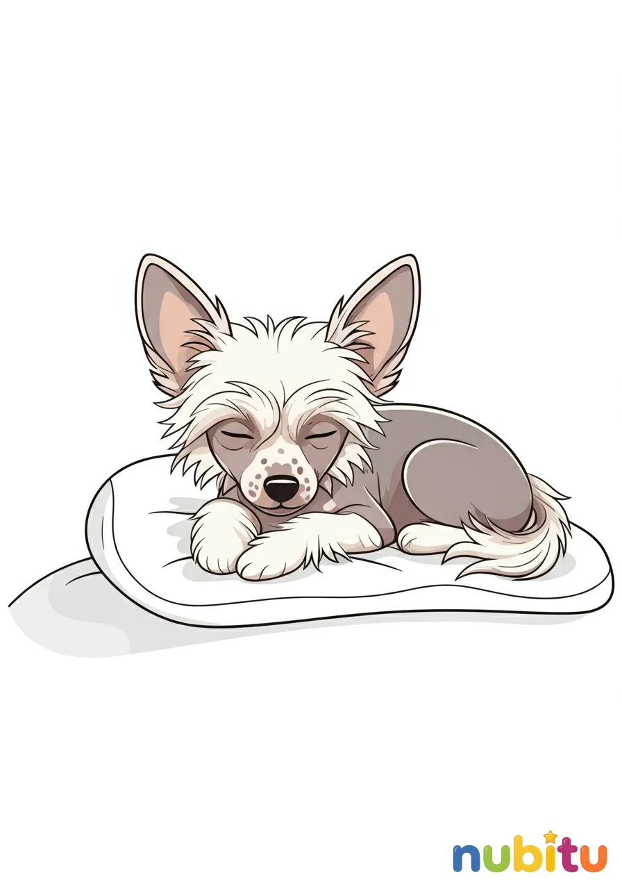 Aquí vemos a un pequeño Crestado Chino acurrucado, disfrutando de un dulce sueño. Sus ojos cerrados y su cuerpo relajado transmiten una sensación de paz. Es un lienzo perfecto para practicar sombras suaves y crear una atmósfera de calma y ternura.