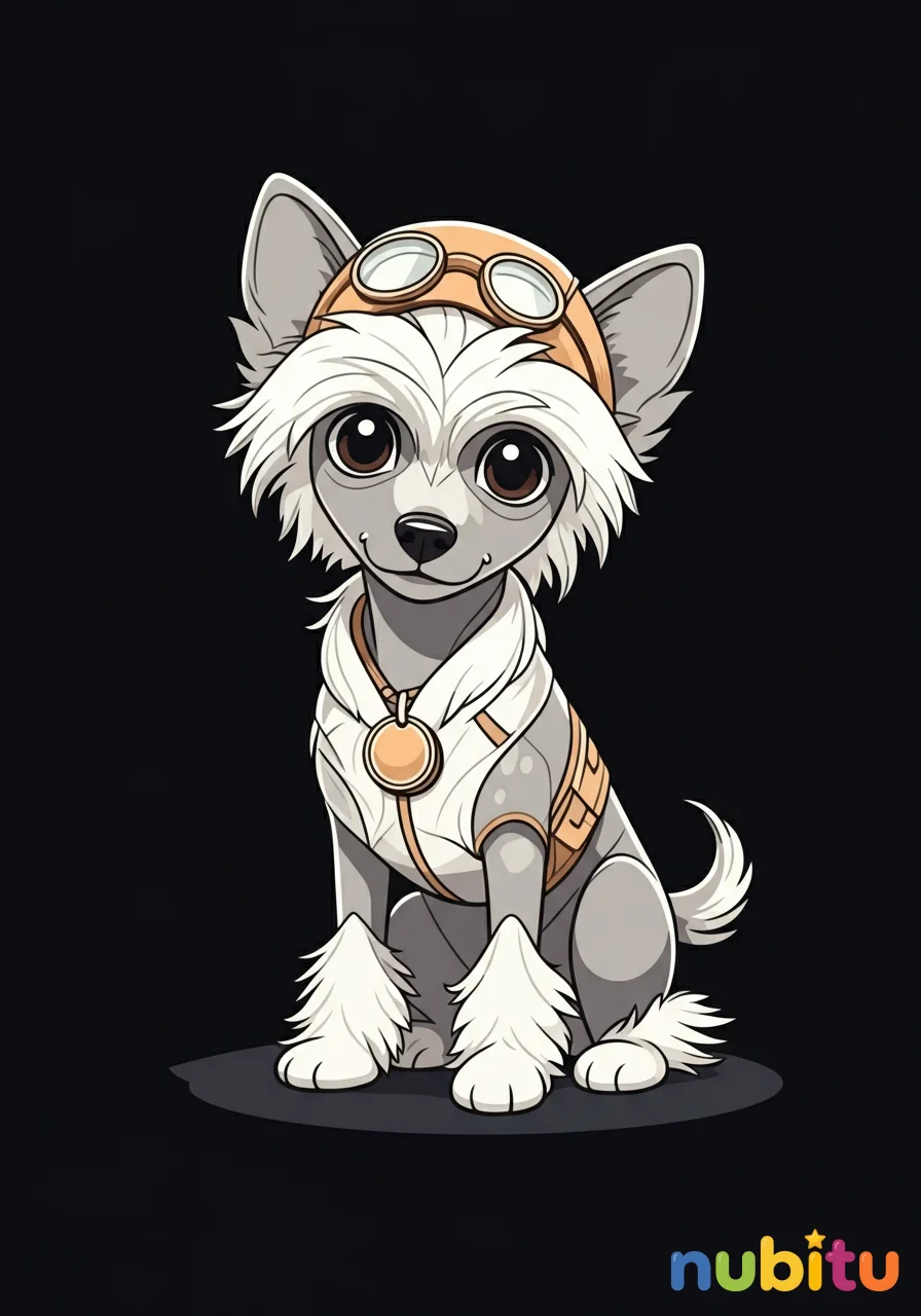 Este adorable Crestado Chino está en plena acción, con sus patitas delanteras levantadas, invitando a una sesión de juego. Su mirada pícara y su cola en alto muestran su espíritu vivaz y alegre, esperando ser llenado de los colores más divertidos que puedas imaginar.