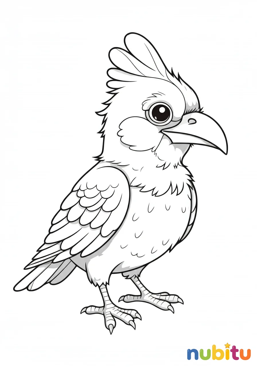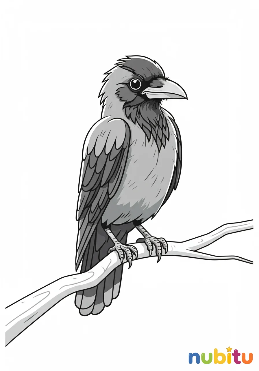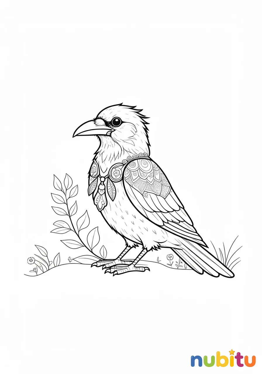 Este cuervo está tranquilo, pensando en todas las aventuras que le esperan. ¿Qué sueños tendrá? ¡Colorea su mundo de fantasía!