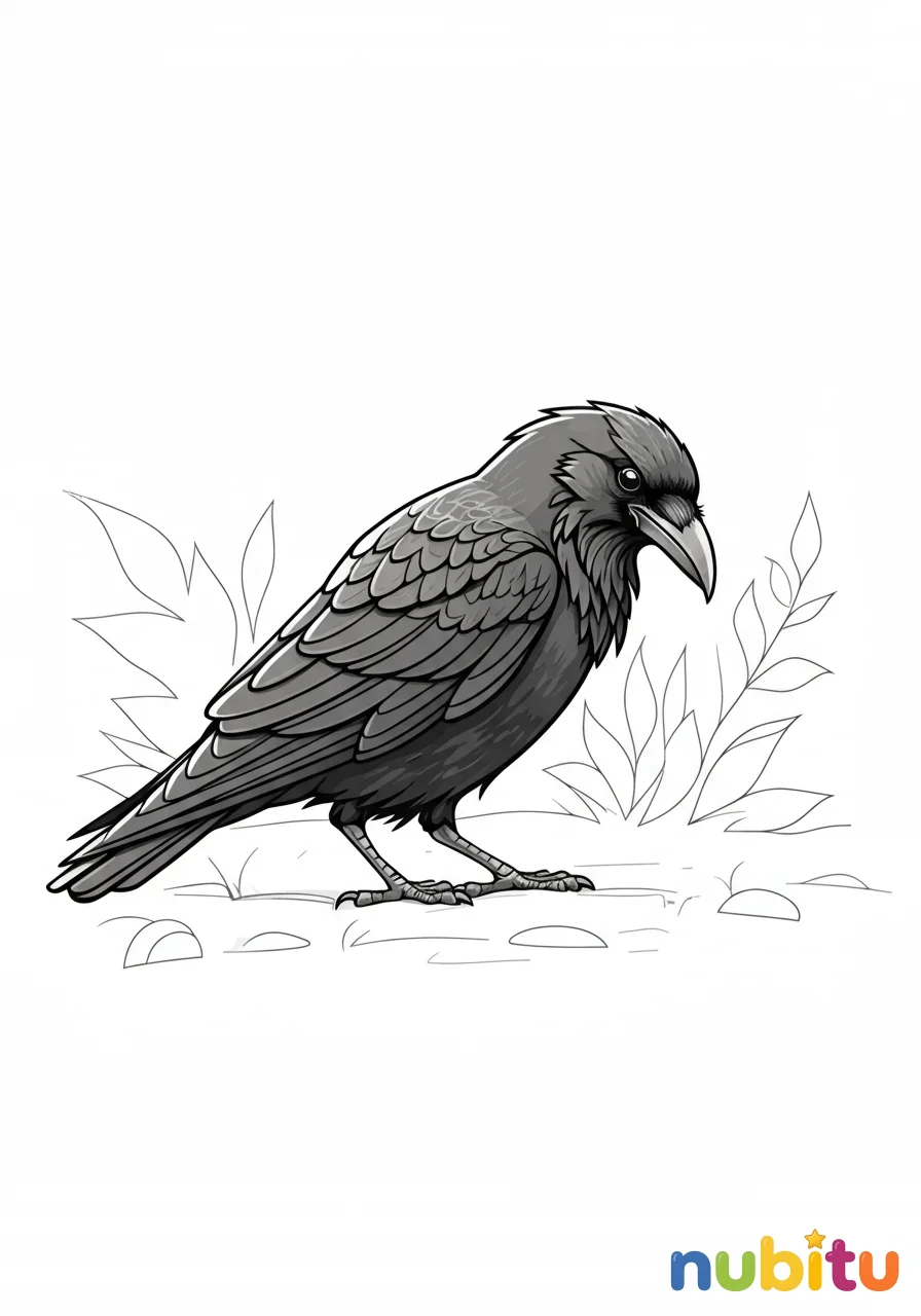 Mira a este cuervo explorador, siempre buscando algo nuevo. ¿Qué crees que está mirando? ¡Usa tus lápices para imaginar su descubrimiento!