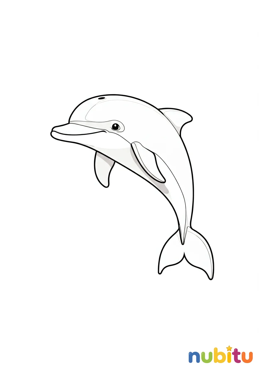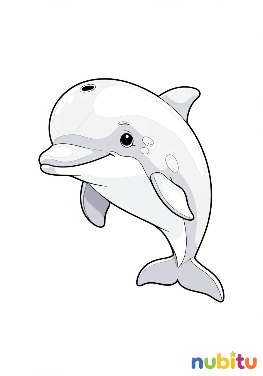 Aquí tienes a un pequeño delfín bebé, muy curioso y juguetón. ¡Está esperando tus colores! ¿Será de un azul clarito o de un gris suave? ¡Tú decides!