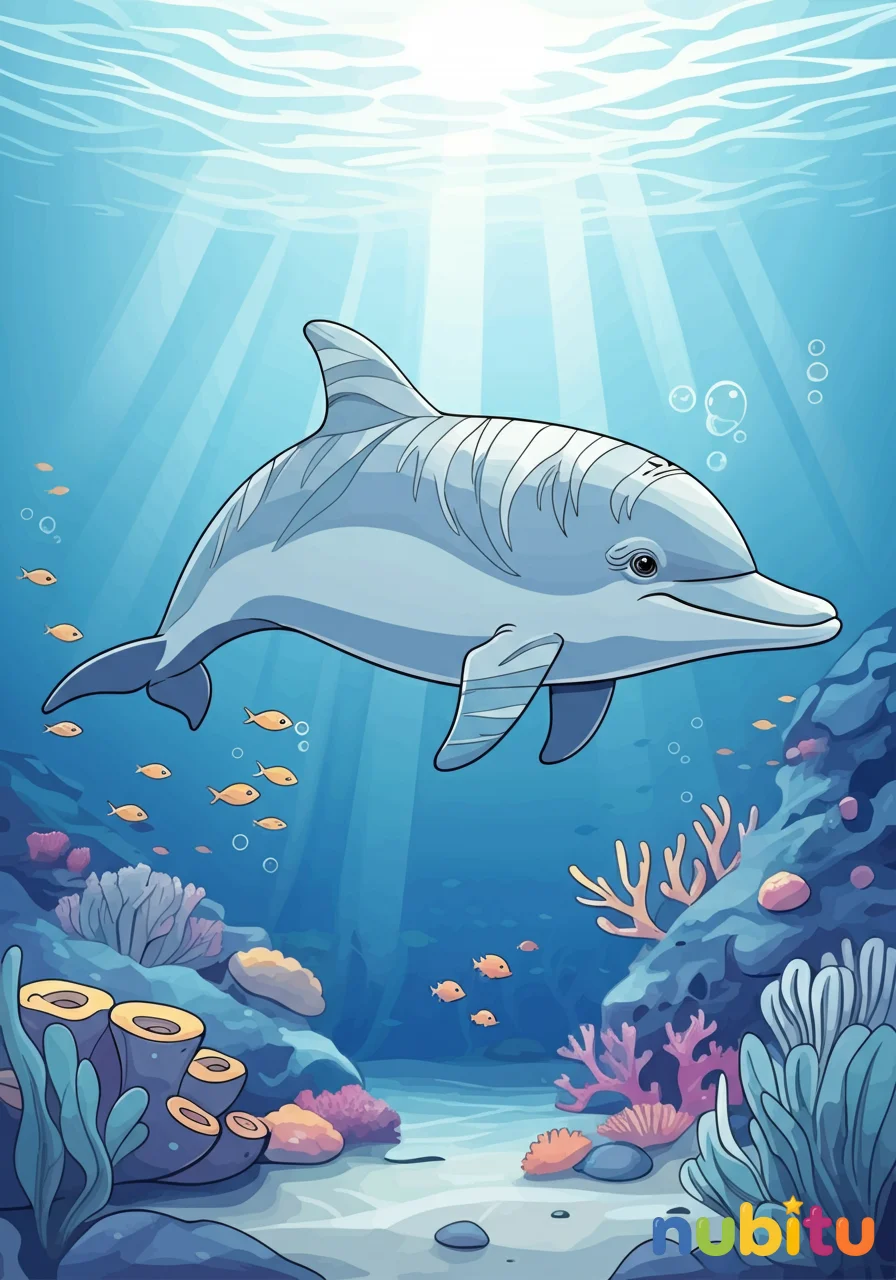 Un chapoteo resonó en la orilla, ¡SPLASH! Nubitu, con su gorra de explorador bien ajustada y su mochila llena de lápices, saltó de su pequeño bote de juguete. No era un día cualquiera; era el día de buscar a los misteriosos ‘delfines listados’, esos que su abuelo le había contado que tenían patrones como rayas de cebra en su piel. Con su lupa en mano, Nubitu escudriñó el agua cristalina. De repente, una sombra alargada y veloz cruzó bajo la superficie. ‘¡Lo vi!’, exclamó, señalando con entusiasmo. Siguió la sombra con la mirada, que se movía con una agilidad asombrosa. Era un delfín joven, con unas líneas oscuras distintivas que recorrían su cuerpo, justo como las historias. El delfín, curioso, asomó su cabeza y emitió un suave ‘clic-clic’. Nubitu sonrió. ‘¡Hola, amigo! Soy Nubitu, y he venido a dibujar tu belleza’. Sacó su cuaderno y un lápiz mágico que, decían, podía capturar la esencia de cualquier criatura. El delfín, como si entendiera, empezó a nadar en círculos elegantes, mostrando sus patrones únicos. Nubitu dibujó cada línea, cada curva, cada aleta, sintiendo la brisa marina y el calor del sol en su piel. No era solo un dibujo; era una conexión, un momento de pura magia entre un niño y una criatura del océano. Cuando terminó, el delfín dio un salto espectacular, como un aplauso acuático, y se despidió con otro ‘clic-clic’ antes de desaparecer en las profundidades. Nubitu guardó su dibujo, sabiendo que había capturado no solo una imagen, sino un recuerdo imborrable y la promesa de futuras aventuras marinas.