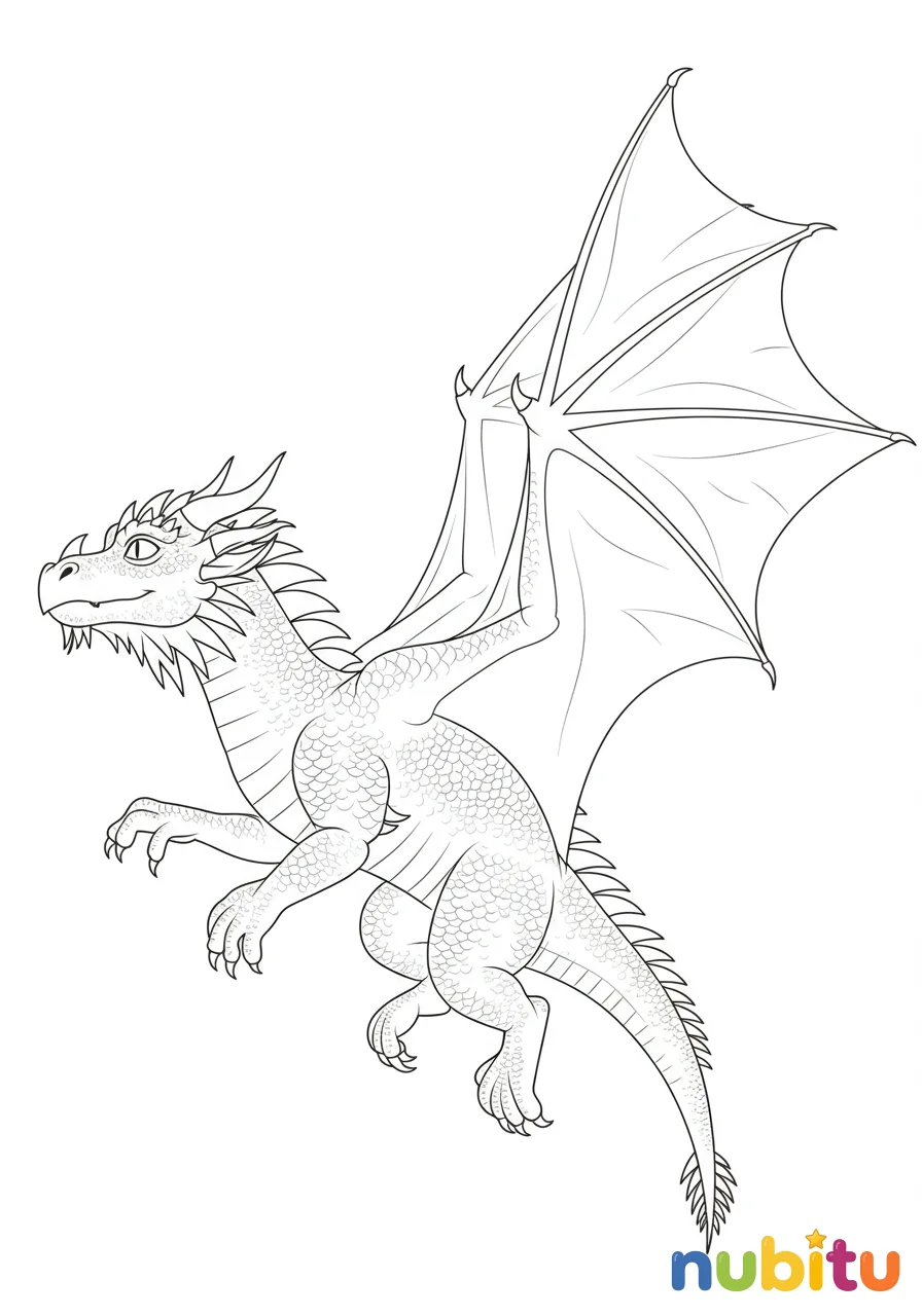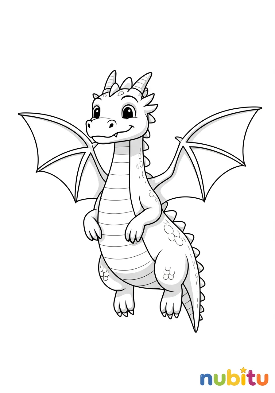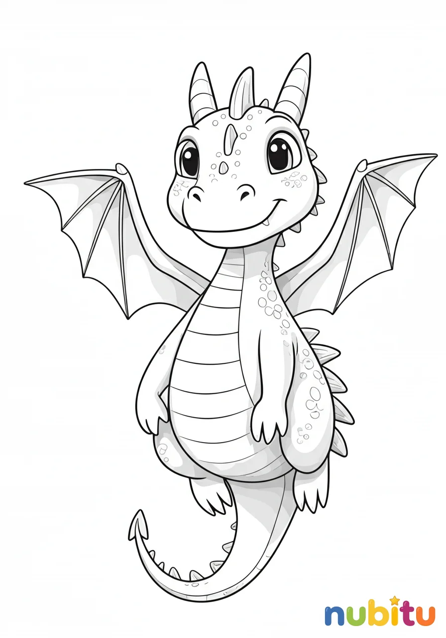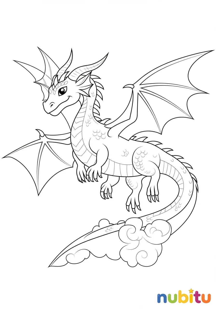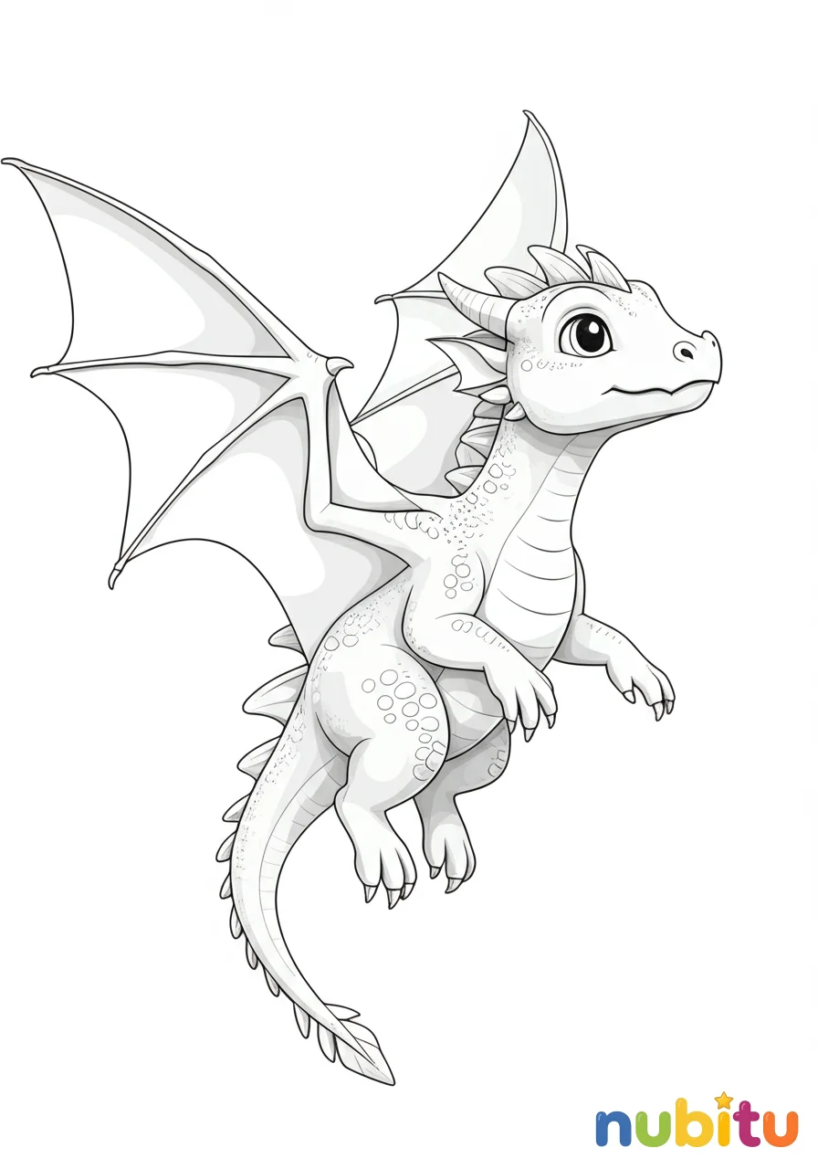 ¡Prepárate para darle vida a este amigable dragón volador! Imagina los colores más brillantes para sus alas y su cola mientras planea por los cielos de tu imaginación. ¡Qué aventura!