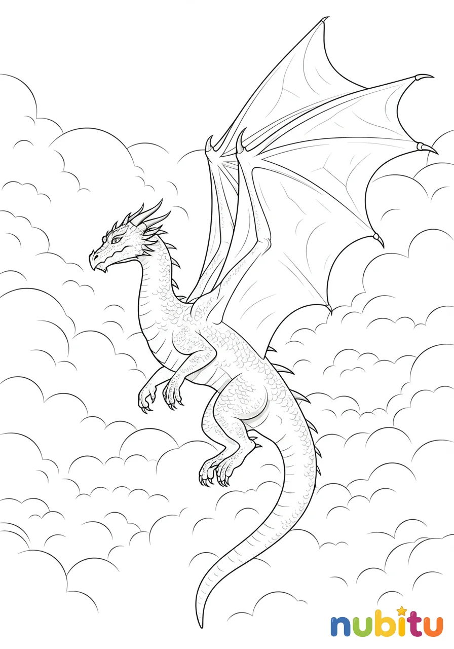 Este majestuoso dragón es el guardián de los cielos. ¿De qué color será su armadura de escamas? ¡Usa tus lápices para darle un toque mágico y poderoso!
