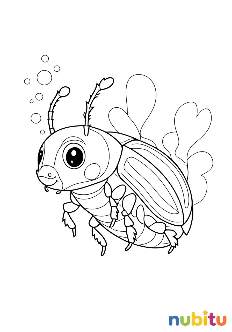 Este escarabajo buceador es un verdadero aventurero de los fondos acuáticos. ¡Imagina qué misterios descubrirá! ¡Deja que tu creatividad fluya y dale los colores más fantásticos!