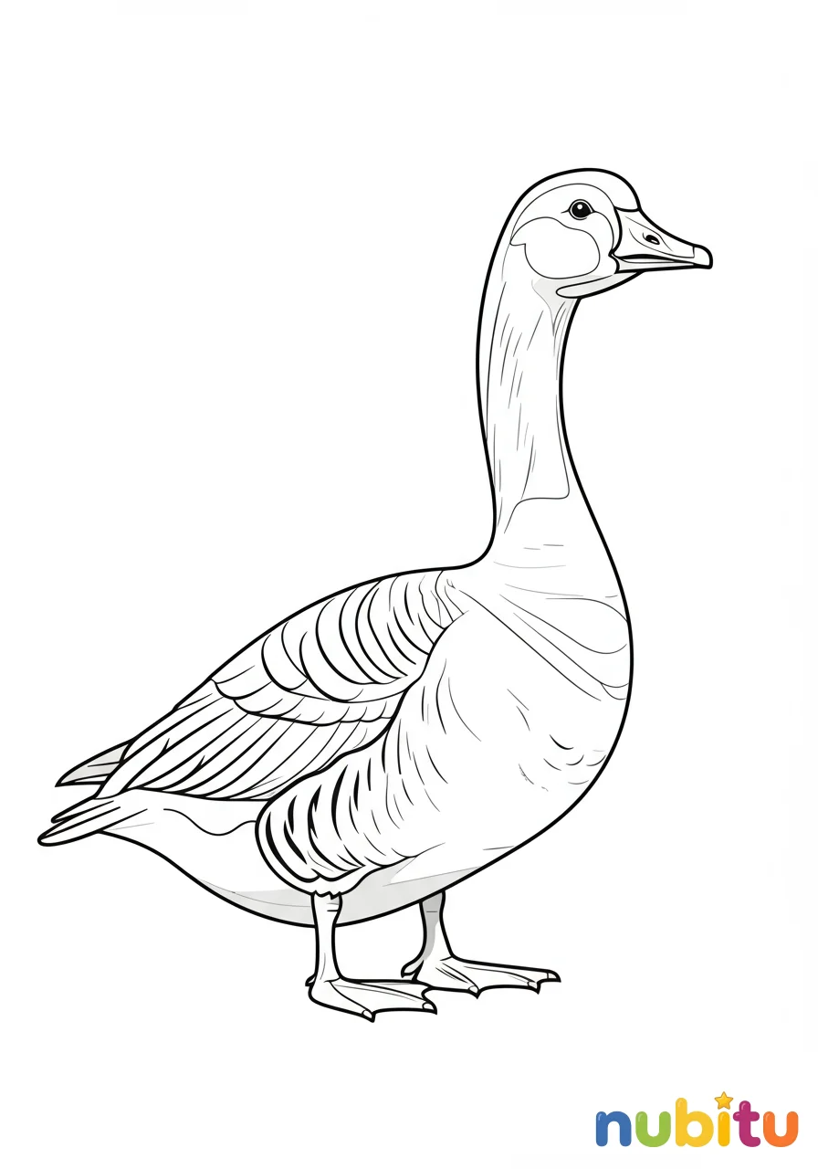 ¡Aquí tienes un ganso adulto, con su cuello largo y elegante! Imagina los colores más bonitos para sus plumas y su pico.