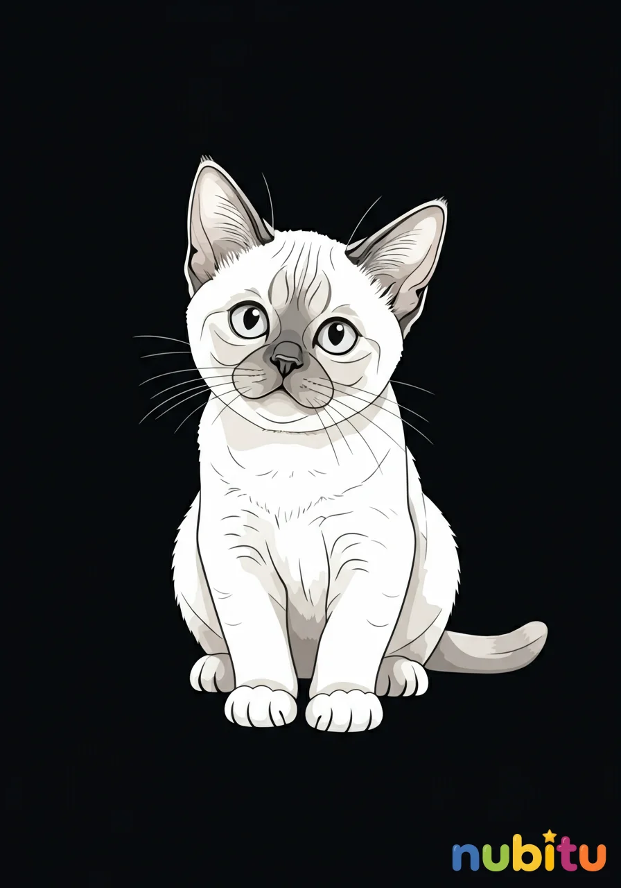 Un Gato Burmés adulto con una expresión amable, sentado erguido y esperando ser llenado de color. Su mirada dulce te invita a crear.