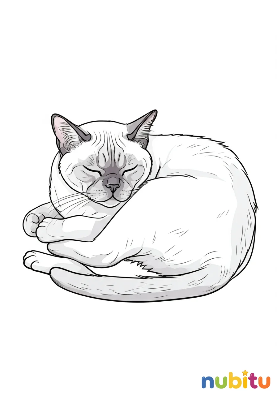 Shhh… este lindo gatito Burmés está tomando una siesta. ¡Imagina los sueños más bonitos mientras lo coloreas con tus tonos favoritos!