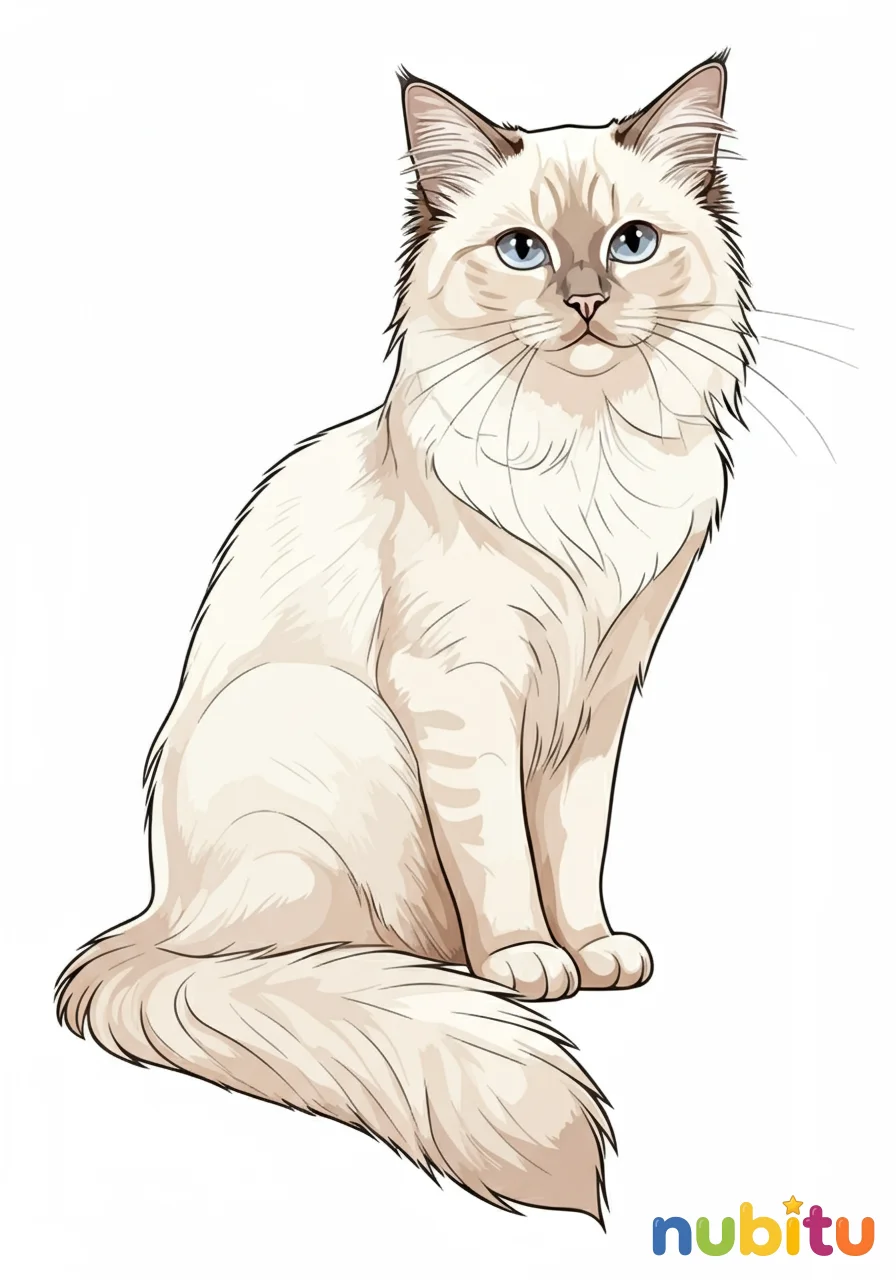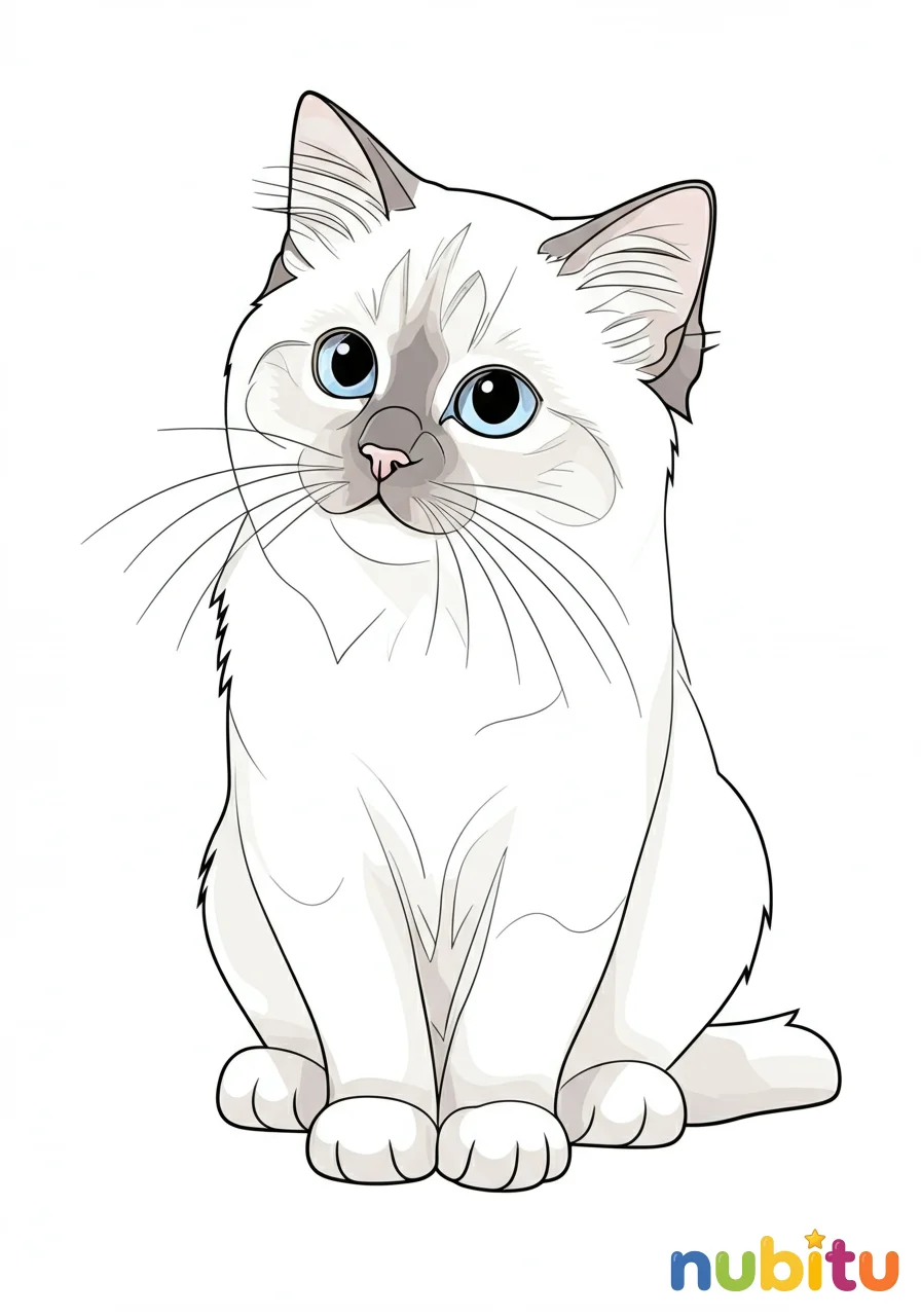 ¡Es un gato Birmano muy elegante! Con tu creatividad, puedes darle vida a su pelaje sedoso y sus patitas blancas. ¡A colorear!
