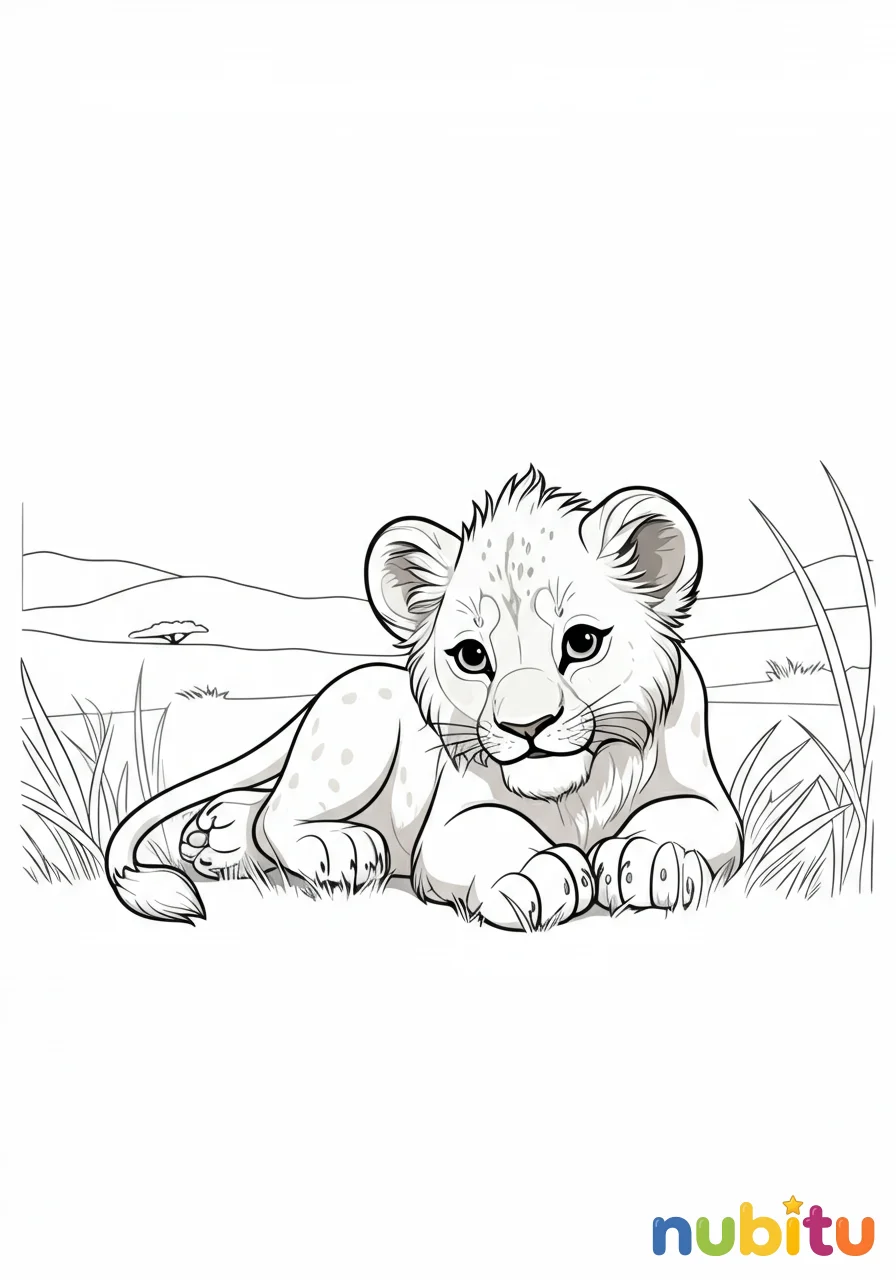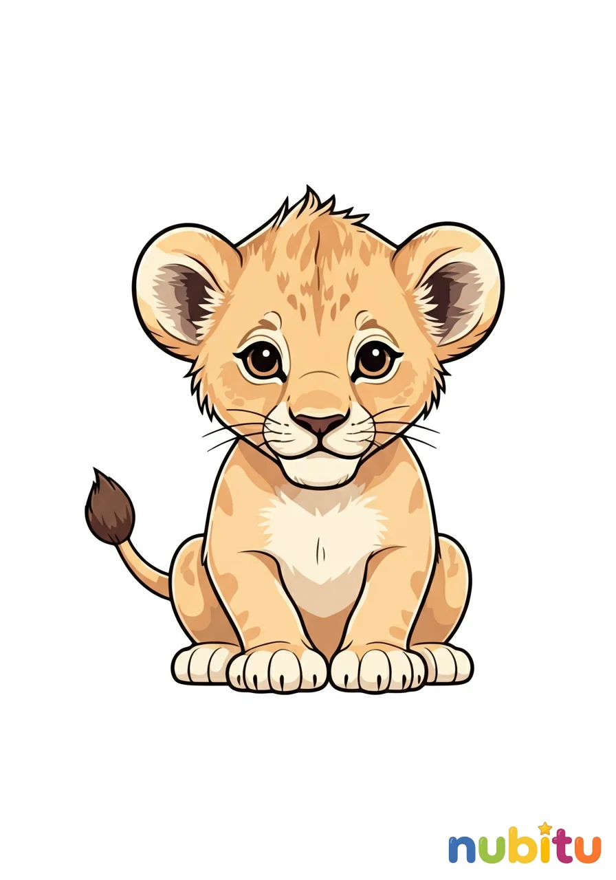 ¡Mira qué tierno este cachorro de león! Imagina los colores de su melena suave y su nariz rosada. ¿De qué color pintarás sus grandes ojos?