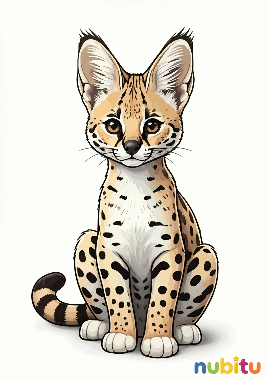 Conoce al serval, un gato salvaje con orejas grandes y patas largas. ¡Es muy elegante! ¿Qué colores usarás para sus manchas y su pelaje?