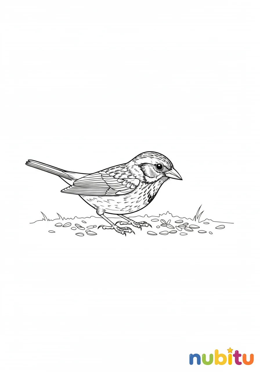 Este Gorrión Molinero es un pequeño explorador, buscando con entusiasmo sus semillas favoritas en el suelo. Sus patitas están listas para saltar y su pico, para picotear. ¡Dale vida a su plumaje con tus tonos más alegres!